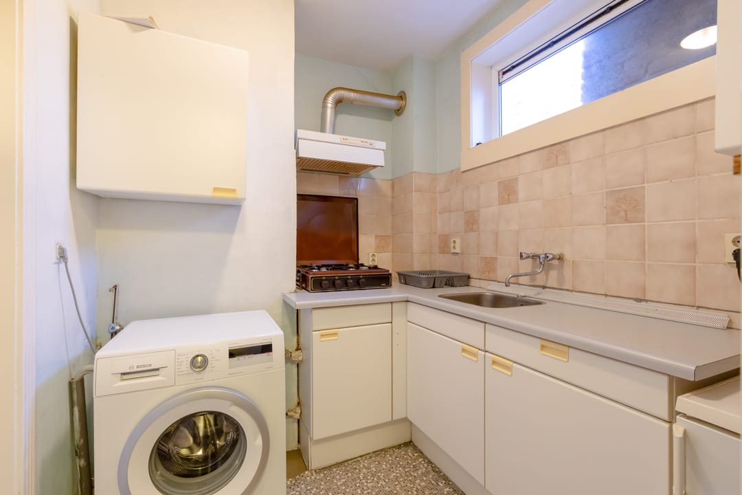 DE WASRUIMTE (ca. 1,5 x 2,0 mtr) is voorzien van de CV-ketel, elektrische boiler en wasmachine- drogeraansluiting.