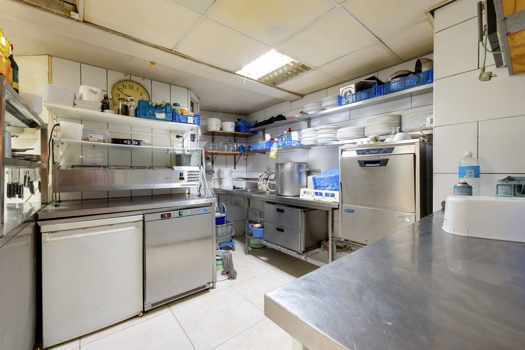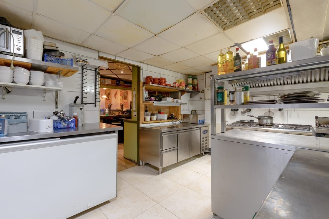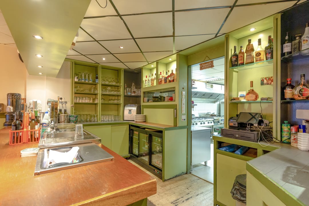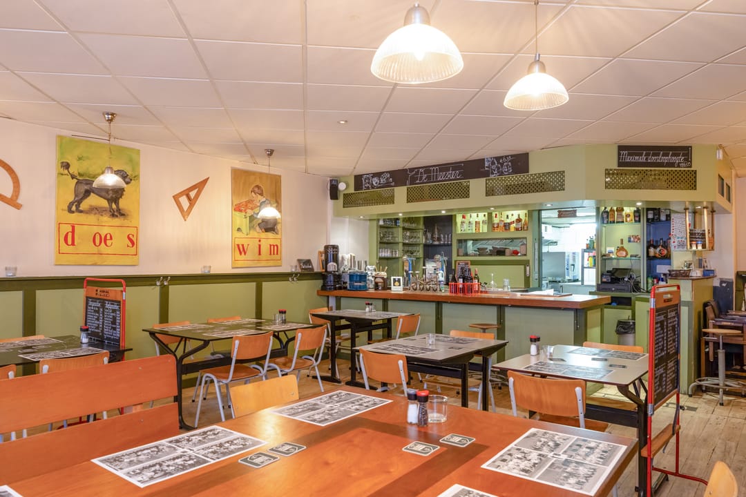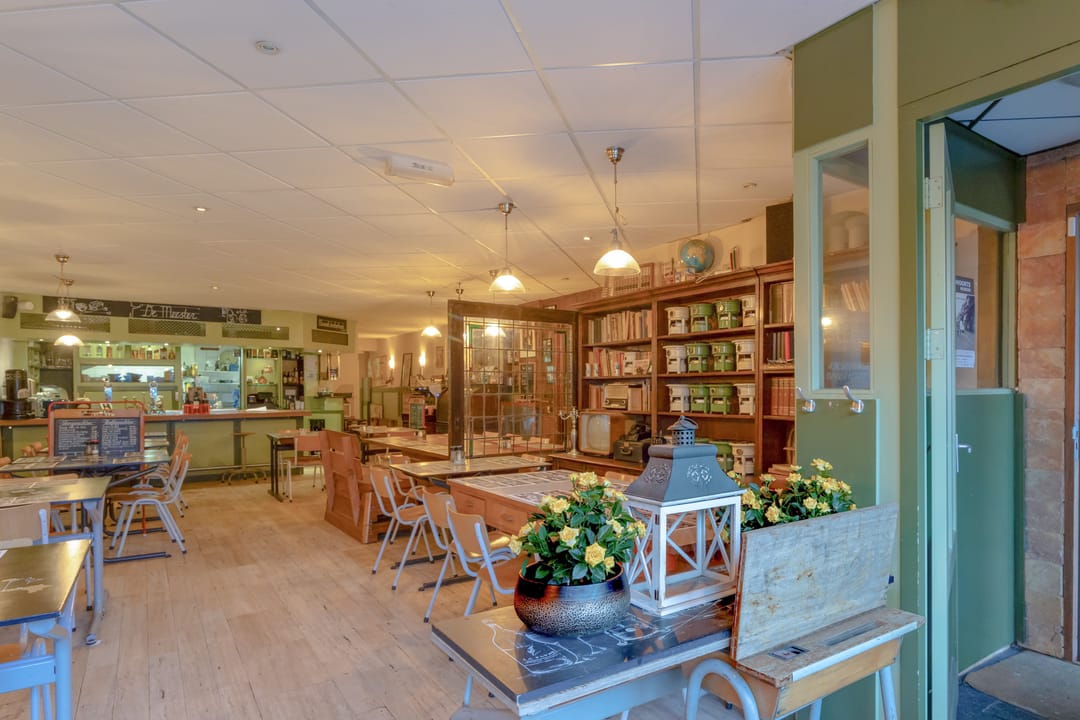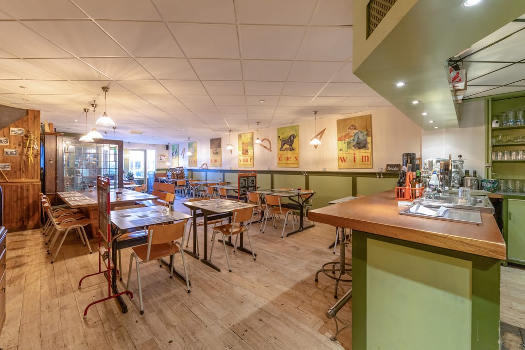 HET RESTAURANT op de begane grond (ca. 19,3 x 6,2 mtr) is naast het eetgedeelte en de keuken voorzien van toiletten, inpandige berging en nooduitgang. Deze is in verhuurde staat met een contract tot 1 december 2029.