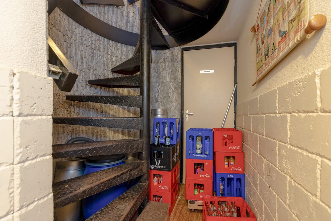 VIA DE BEGANE GROND betreedt u het pand en staat u in de tochthal met deuren naar het restaurant en de trapopgang.