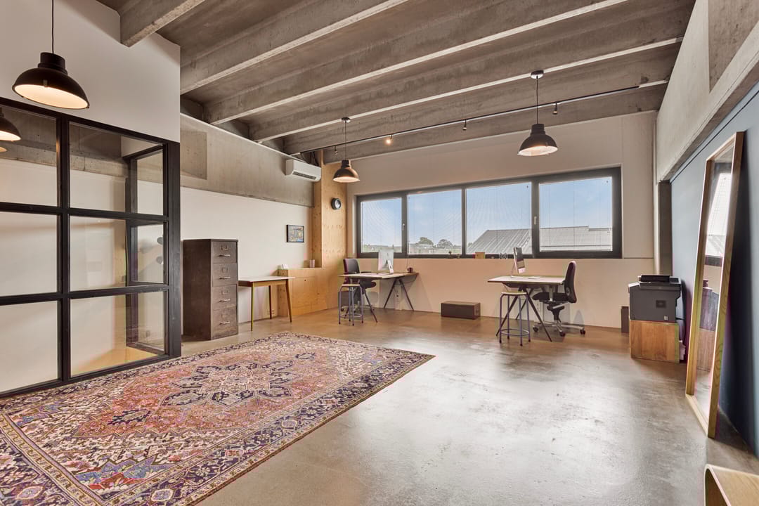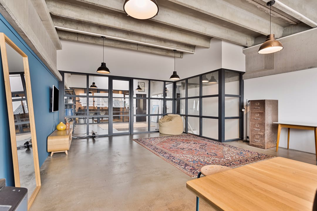 • Verdieping verdeeld in drie separate ruimten met moderne glazen scheidingswanden