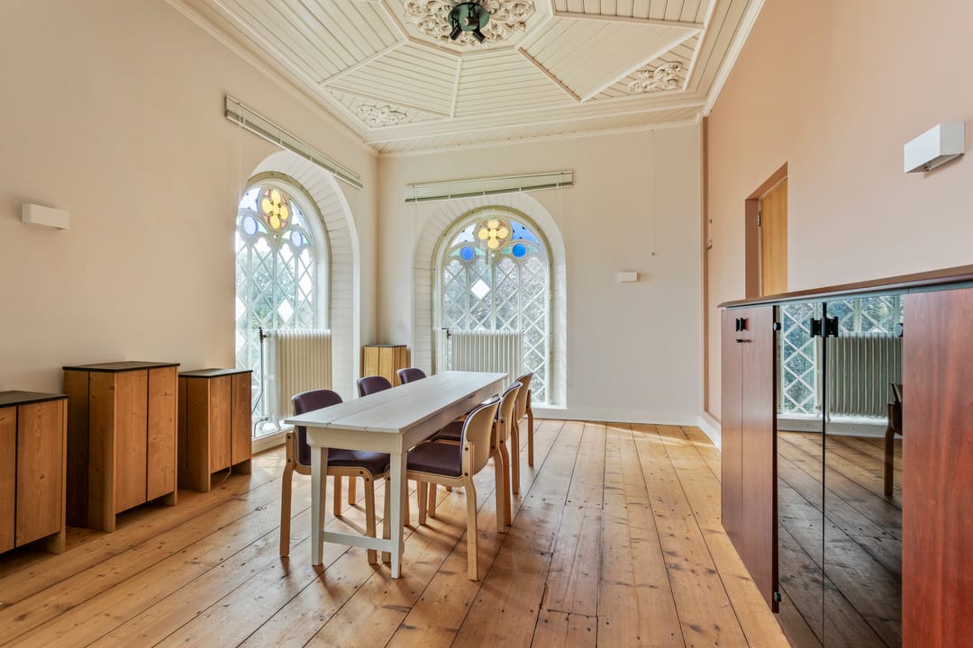 De kantoorruimte bestaat totaal uit circa 55 m² bvo en is gelegen op de eerste verdieping. De kantoorruimte is opgedeeld in 2 ruimtes waar eveneens een pantry is gesitueerd. Op de begane grond tref je de gemeenschappelijke entree en het toilet. Aan de zijzijde van de kerk tref je voldoende parkeergelegenheid.