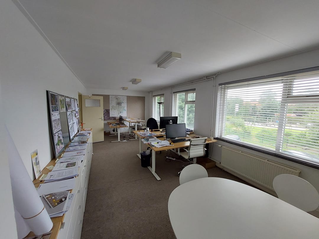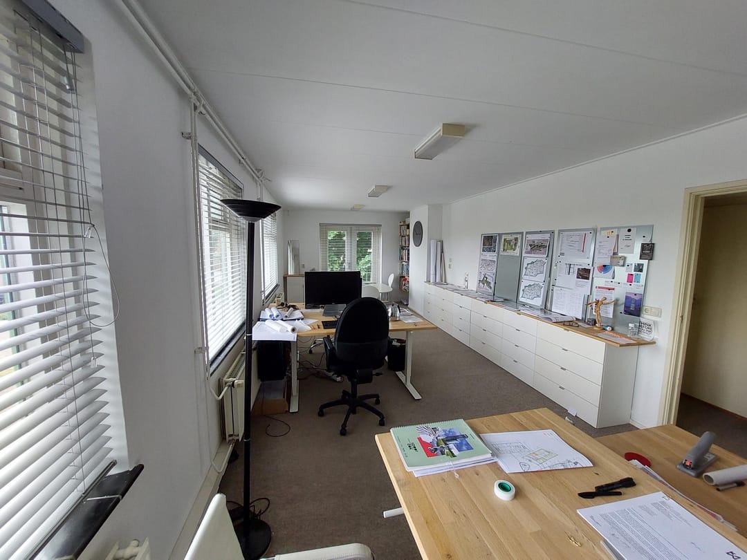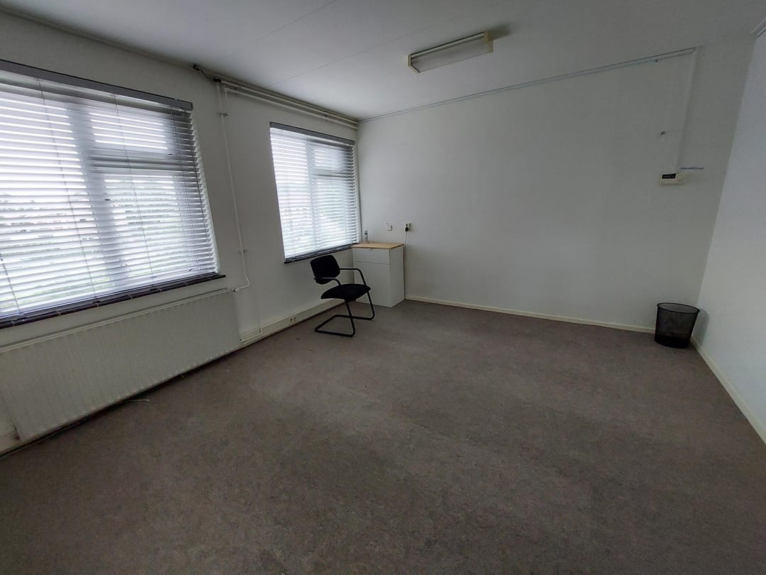 Kantoorruimte te huur. Het kantoor bevindt zich op de eerste verdieping boven een dierenartspraktijk en heeft een eigen ingang. Het is gelegen op korte afstand van de snelweg en op loopafstand van het treinstation.