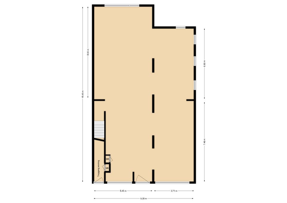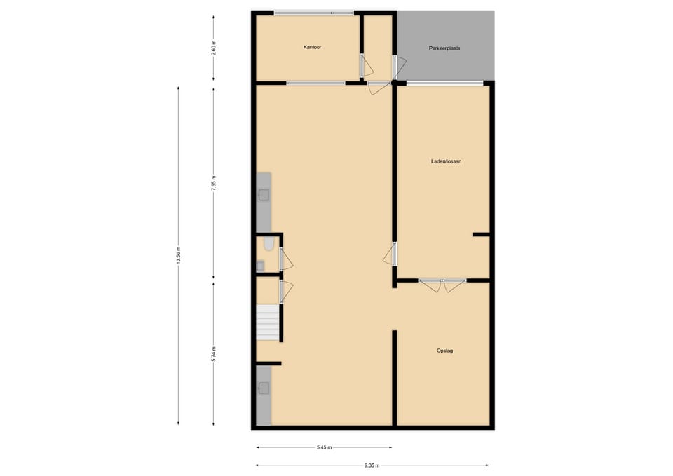 De commerciële ruimte wordt casco verhuurd en bovengenoemde voorzieningen blijven om niet achter in het gehuurde.