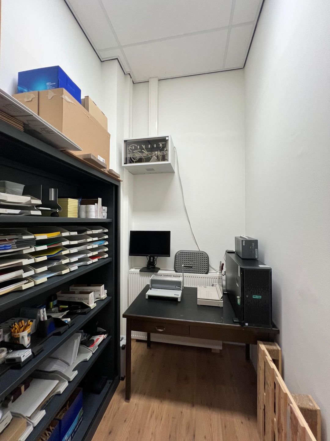 - Te openen ramen, kabelgoten, systeemplafond, toilet, pantry en verwarming
