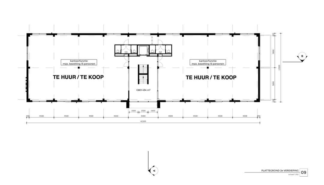 Het kantoorgebouw wordt gerealiseerd op een prominente hoeklocatie en bestaat uit vier lagen, totaal ca. 2.104 m². De beschikbare kantoorlaag is gelegen op de volledige tweede etage met een totale oppervlakte van ca. 494 m² BVO alsmede een onverdeeld aandeel in het gemeenschappelijke trappenhuis, hal & lift.