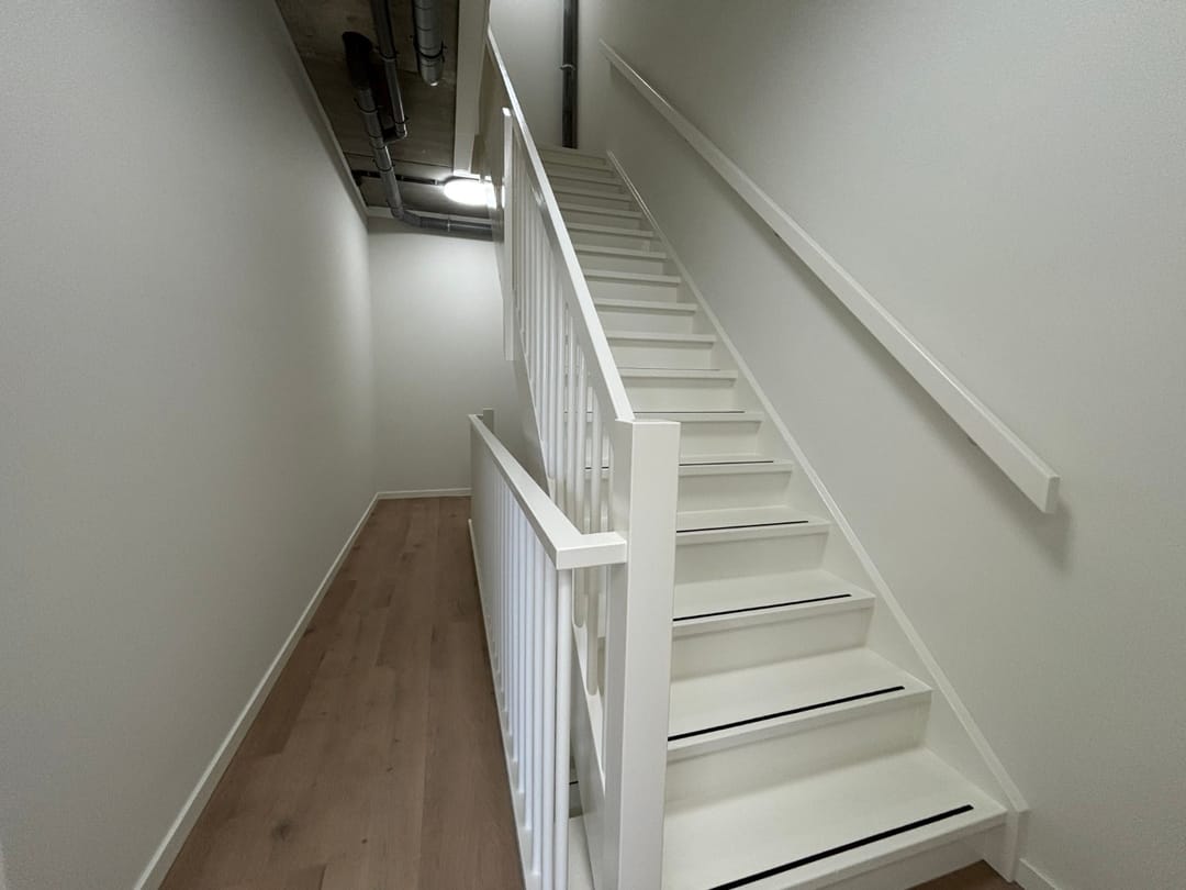 Entree tot de kantoorruimtes middels de separate loopdeur. Middels de trap bereikt u zowel de kantoorruimte op de 1e verdieping als de kantoorruimte op de 2e verdieping.