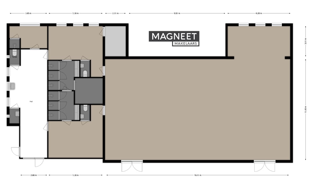 • Voormalige gymzaal met vrije hoogte van ca. 5,5 meter