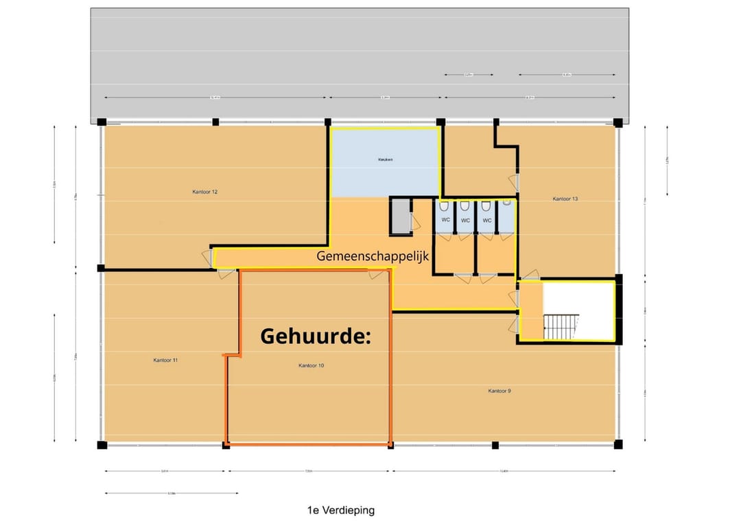 Kantoorloft 10: ca. 57 m² BVO € 595,- per maand, excl. BTW; (gelegen op de eerste verdieping)
