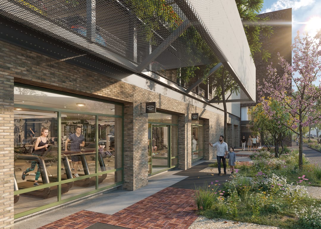 Op de begane grond is de commerciële ruimte voorzien. Binnen de commerciële functie in dit blok zijn de functies gezondheid en kantoren mogelijk met de volgende voorwaarden:
