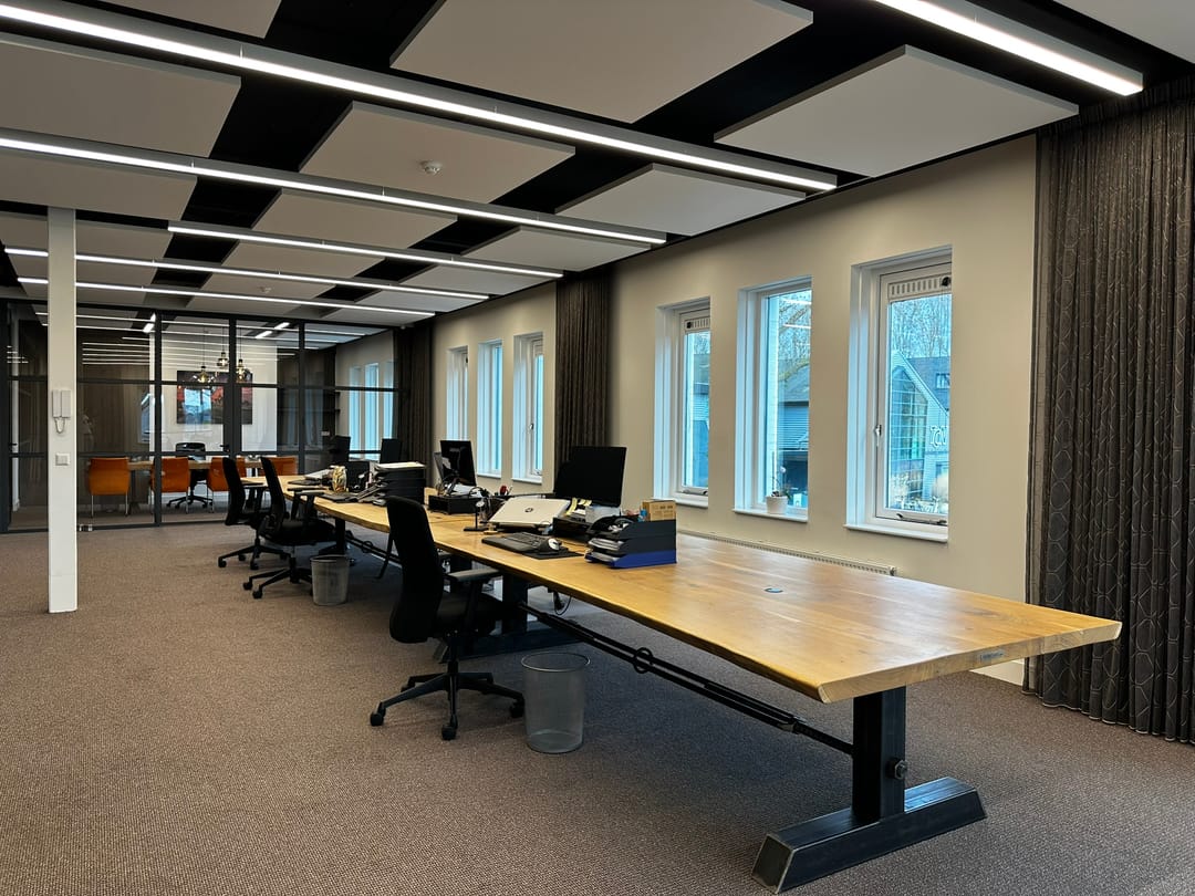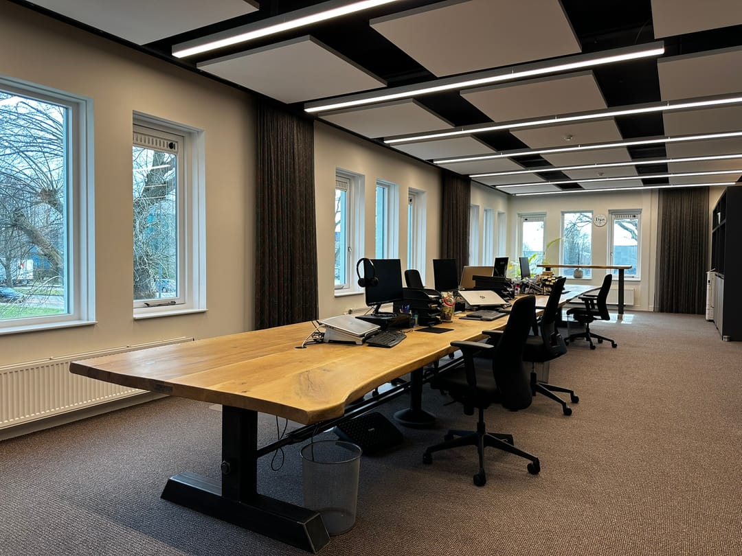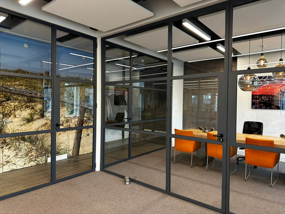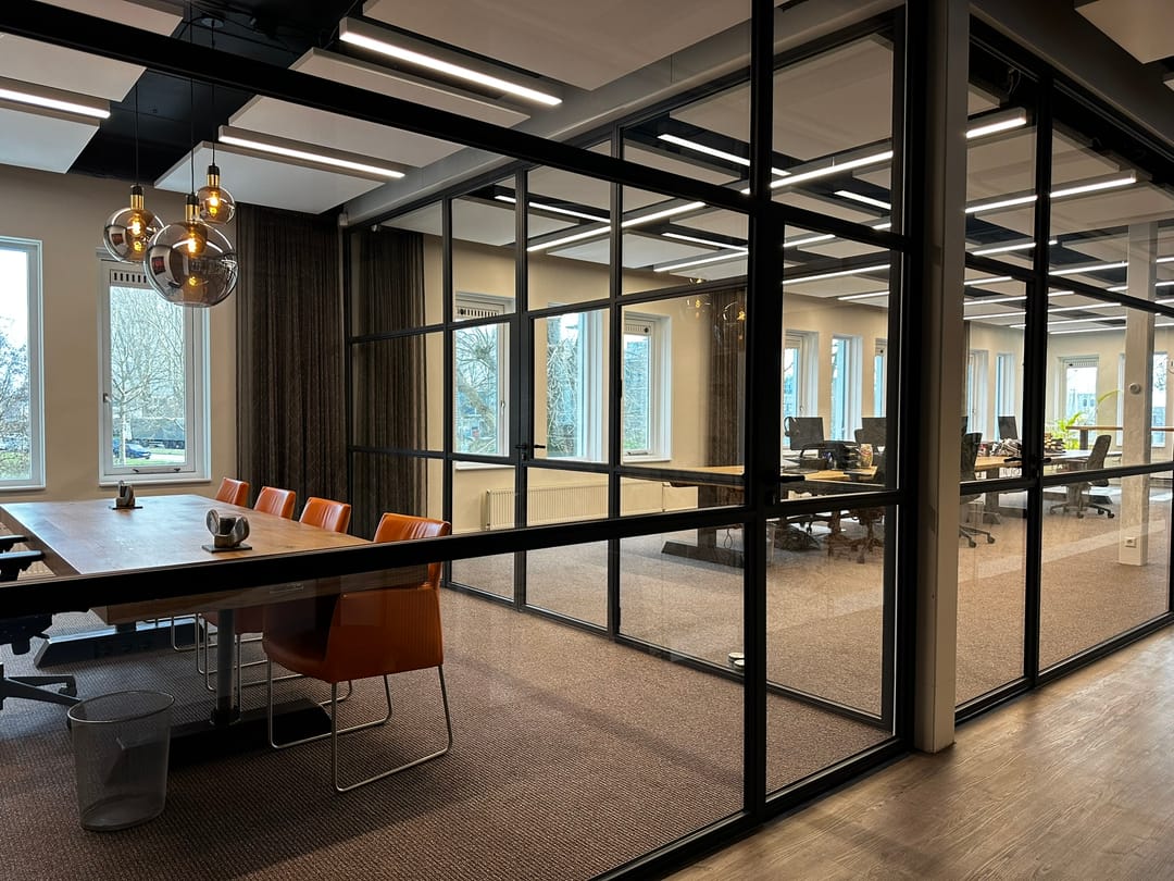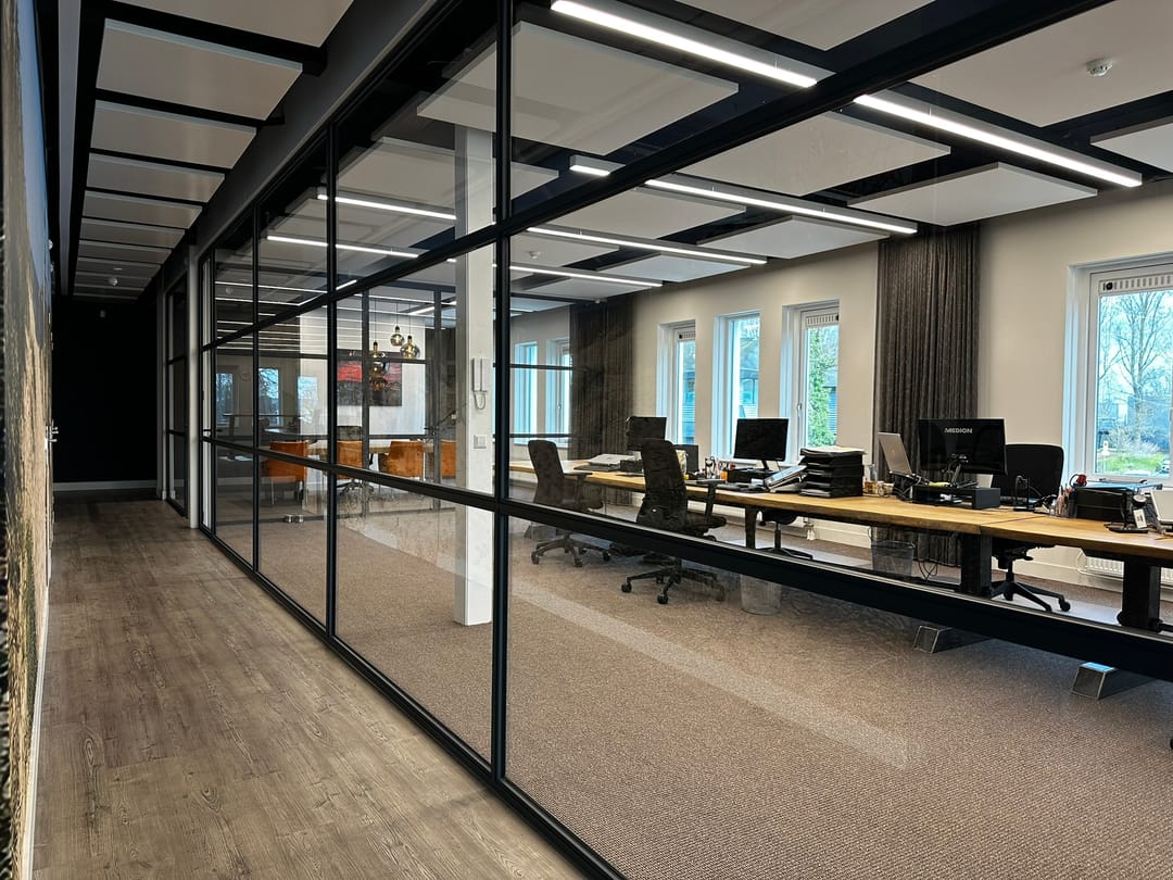 De kantoorruimte wordt afgescheiden doormiddel van moderne glazen wanden. Daarnaast beschikt de kantoorruimte over diverse raampartijen, waarvan de ramen te openen zijn. De glazen wanden en de diverse raampartijen zorgen samen voor een ruime, lichte en prettige werkomgeving.