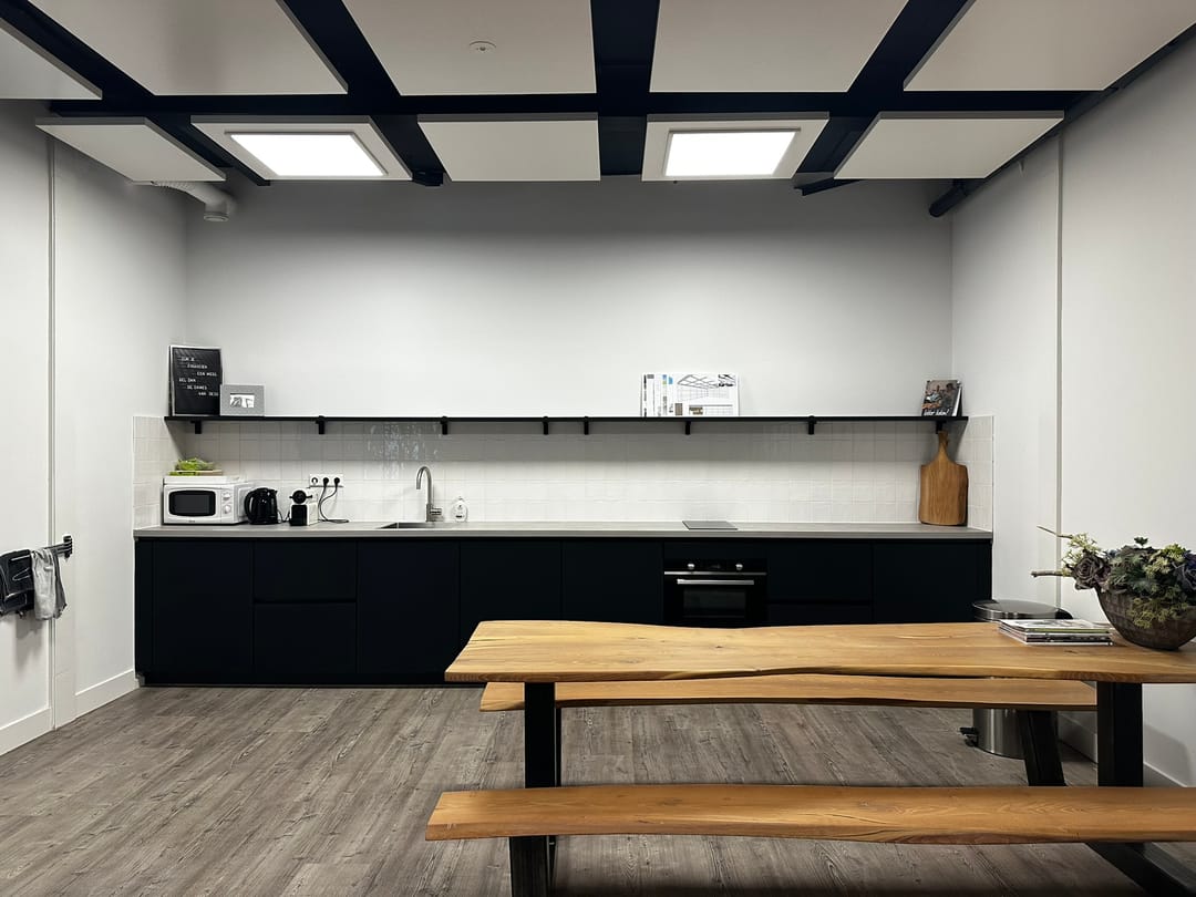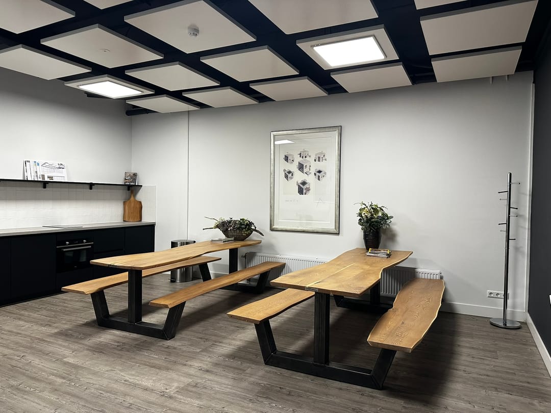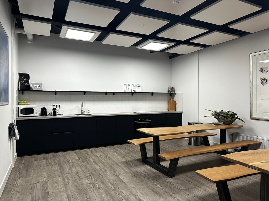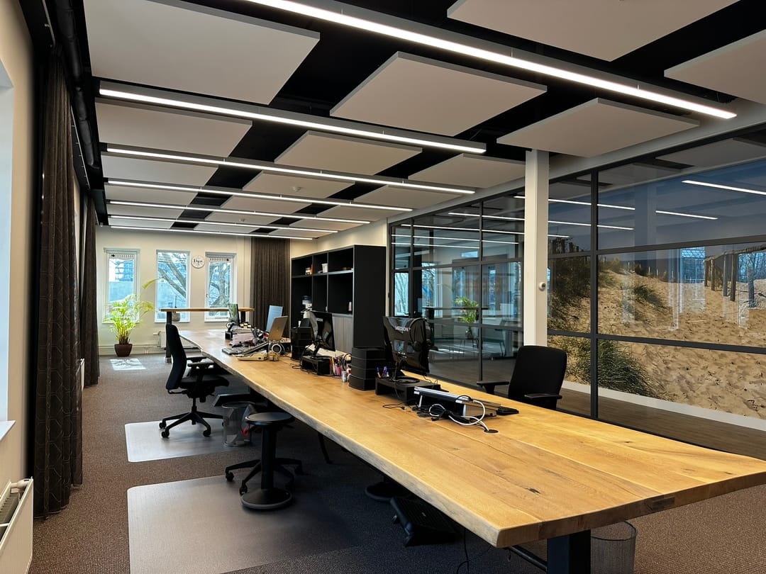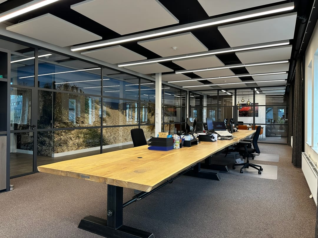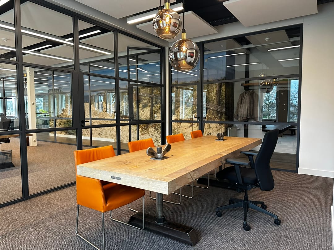 De kantoorruimte wordt afgescheiden doormiddel van moderne glazen wanden. Daarnaast beschikt de kantoorruimte over diverse raampartijen, waarvan de ramen te openen zijn. De glazen wanden en de diverse raampartijen zorgen samen voor een ruime, lichte en prettige werkomgeving.