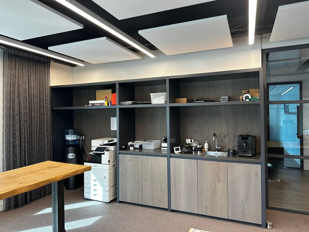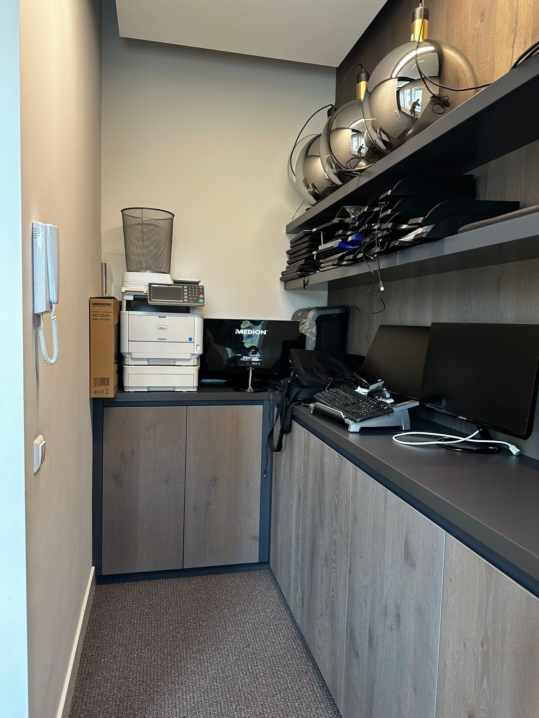 De grote kantoorkamer beschikt over een ruime inbouwkast welke is voorzien van een kleine eigen pantry. De kleine kantoorkamer beschikt over een eigen opbergruimte voorzien van een lage inbouwkast. De indeling is flexibel, indien gewenst kan er in de grote kantoorkamer nog een extra kantoor-/spreekkamer gerealiseerd worden.