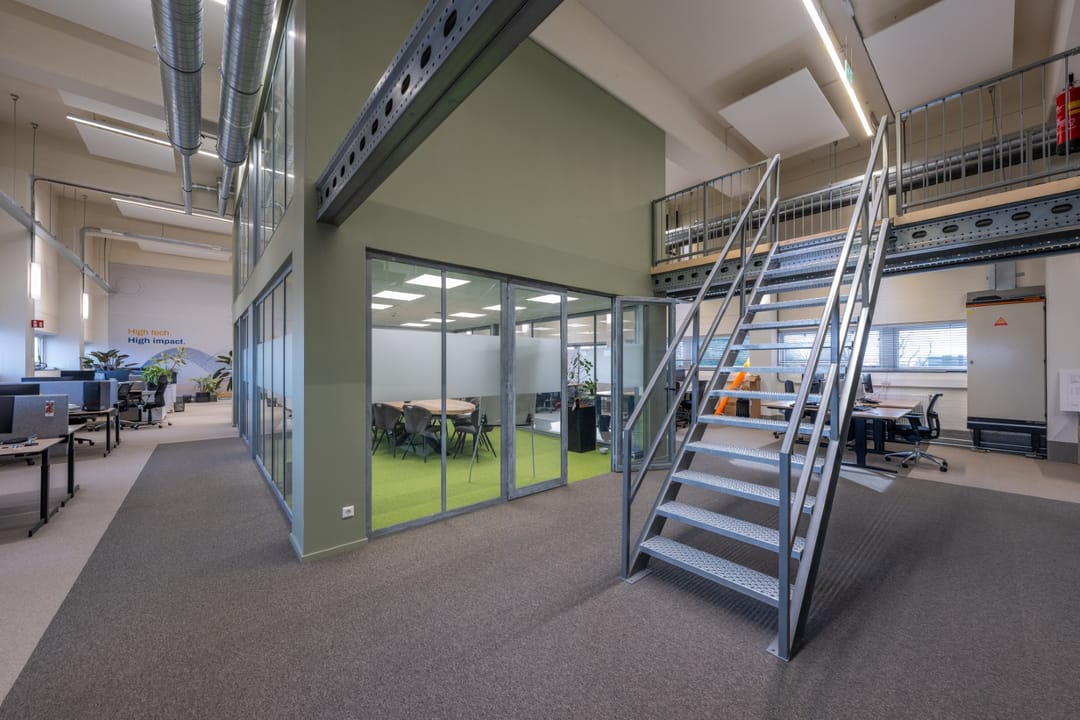 De kantoorruimte is volledig en modern in gericht o.a. voorzien van: