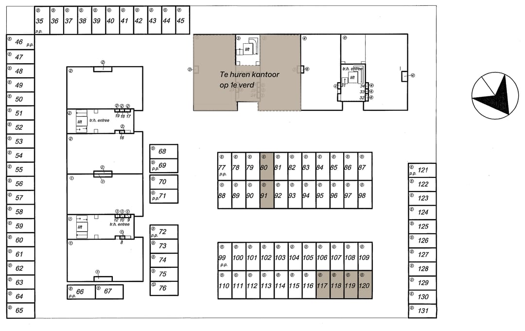 Er zijn 6 parkeerplaatsen beschikbaar, welke worden bijgehuurd voor € 450,- per parkeerplaats per jaar, excl. BTW.