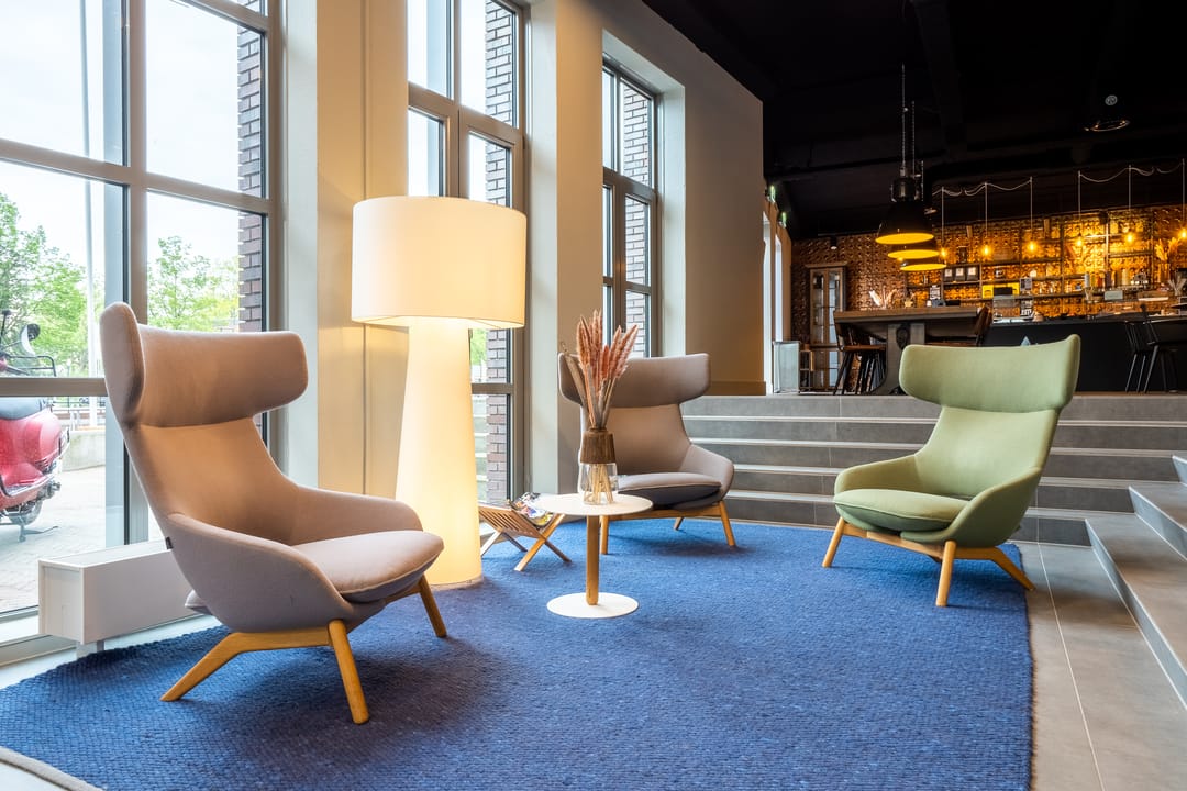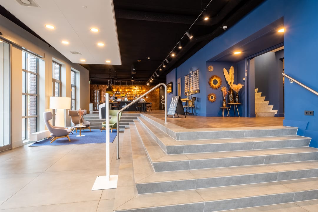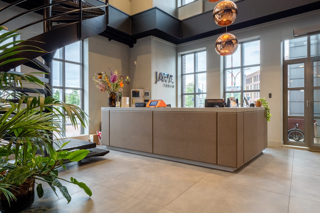 Begane grond: Entree met bemande receptie, lounge, bar, horecaruimte en flexwerkplekken