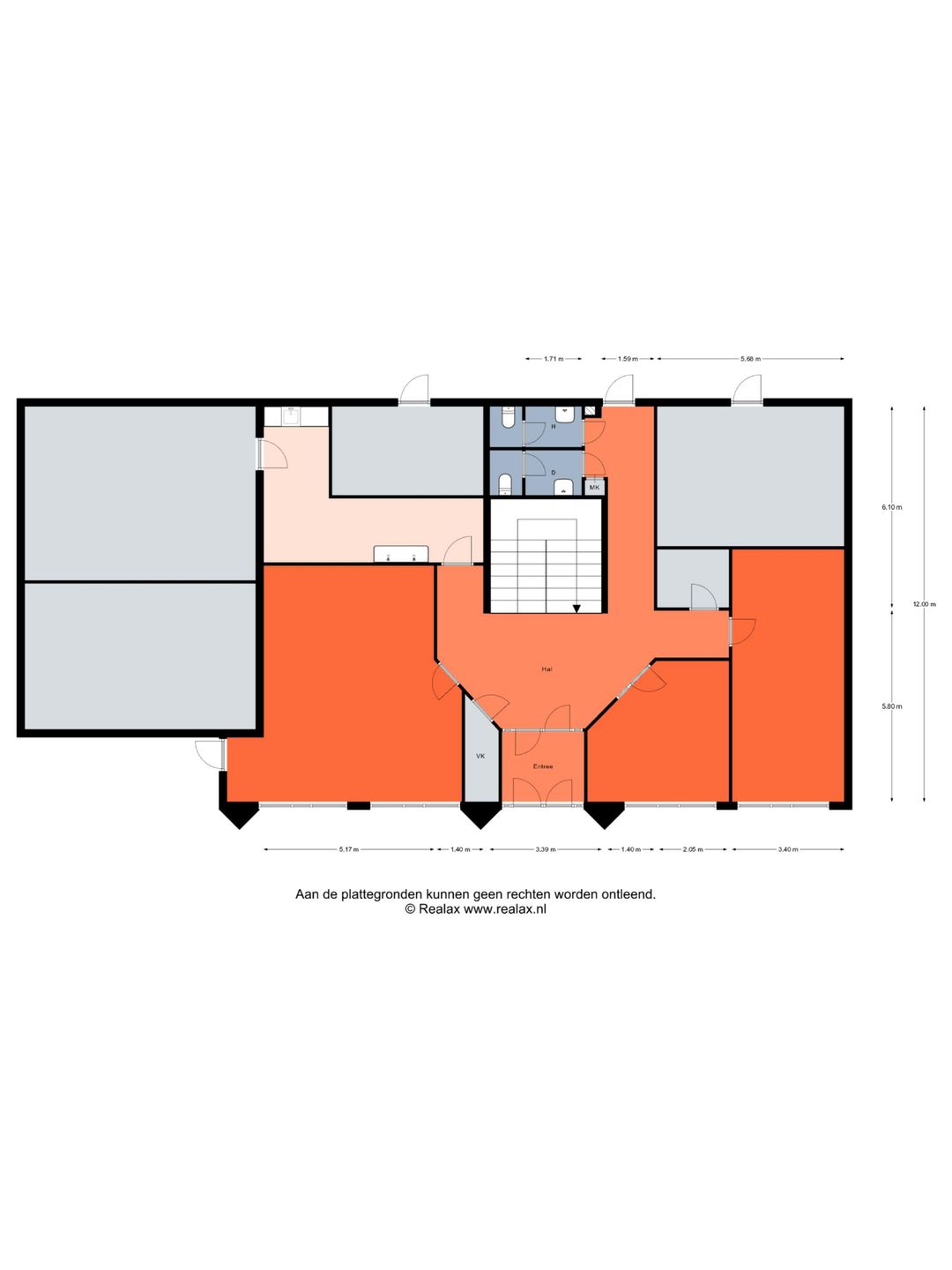De oppervlakten zijn gemeten door verhurend/verkopend makelaar uit een kopie bouwtekening. Het opgegeven metrage is derhalve indicatief; er kunnen geen rechten aan worden ontleend noch kan er sprake zijn van enige verrekening achteraf.