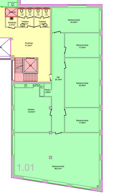 - Liften, te openen ramen, kabelgoten, systeemplafond, toilet, pantry, verwarming en kamerindeling