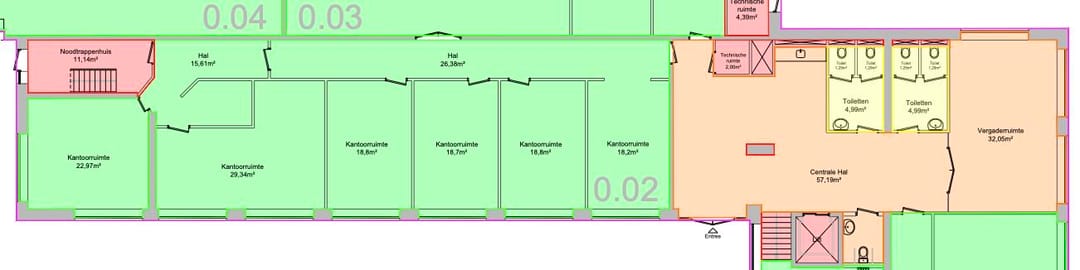 De beschikbare kantoorruimtes bevinden zich op de begane grond en de eerste verdieping.