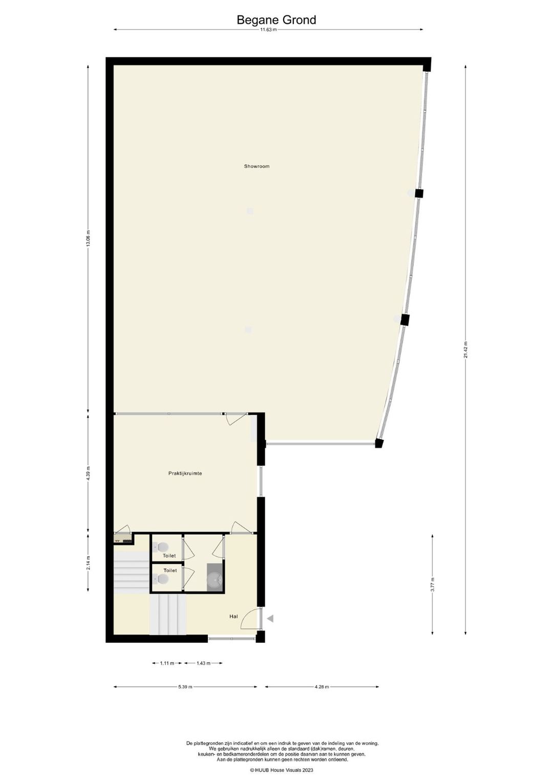 - circa 164 m2 showroom/kantoorruimte op de begane grond;