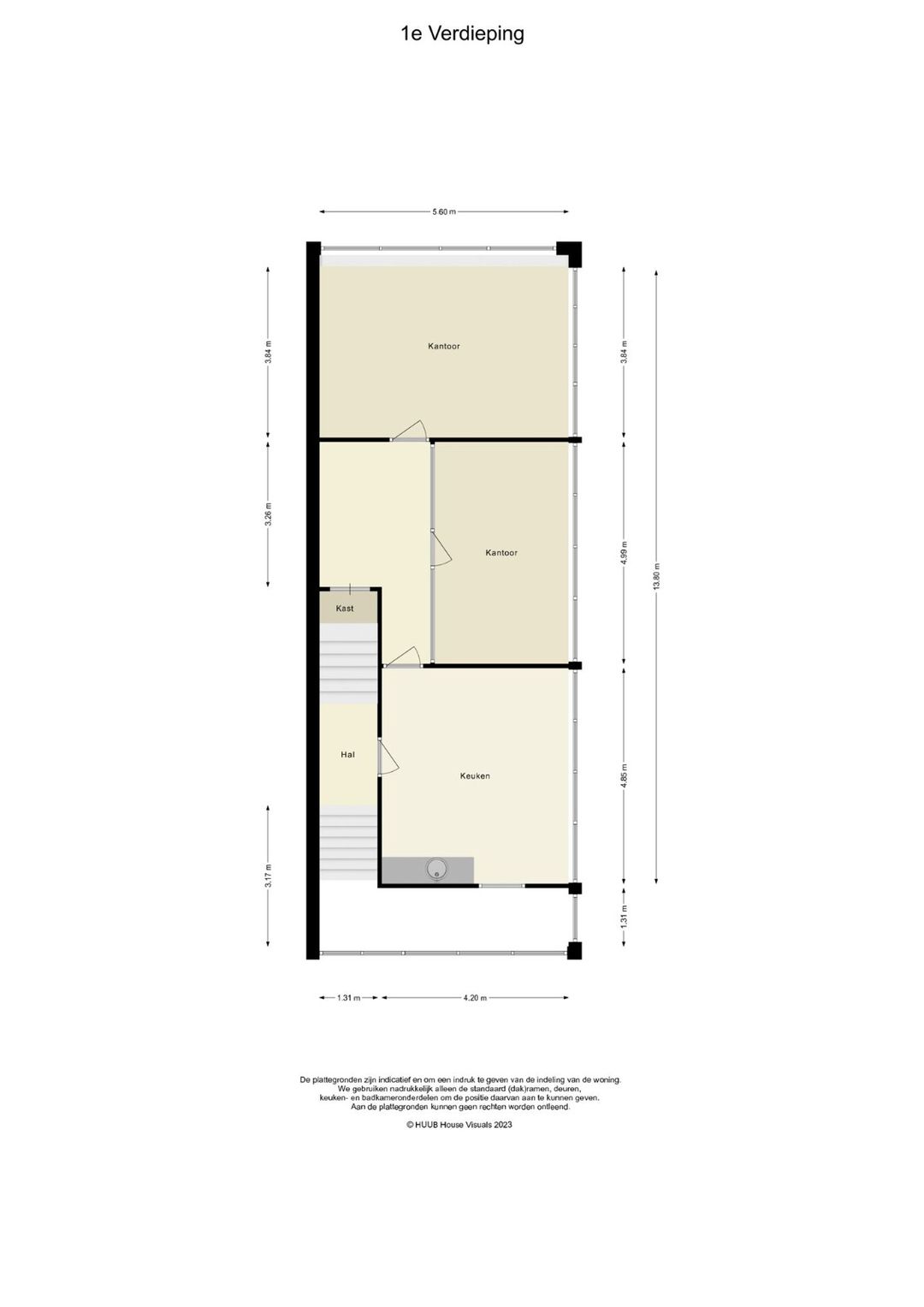 - 1e verdieping: kantoorruimte ca. 91 m²