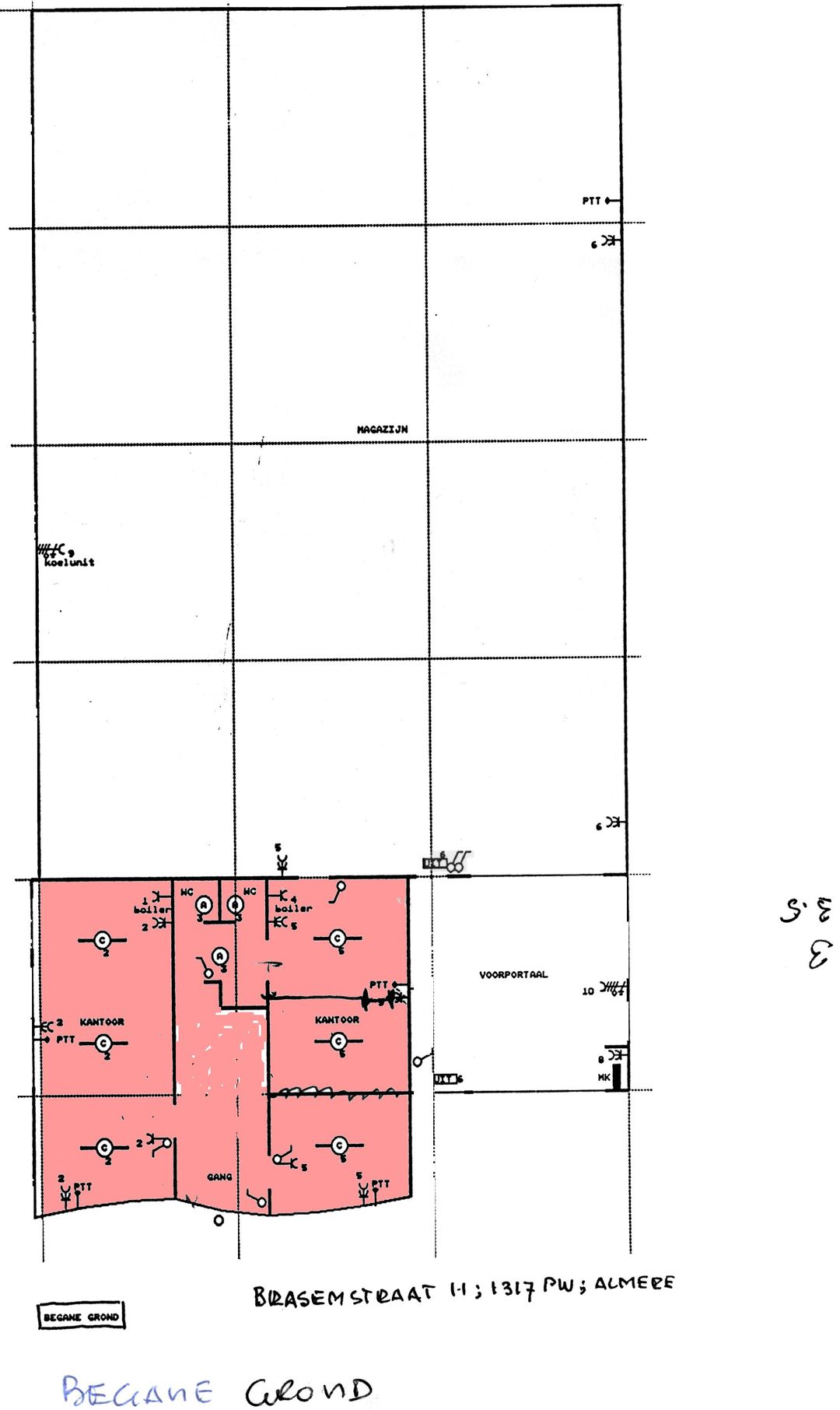 Begane grond: entree, toiletunit met twee toiletten, keuken, 2 kantoorkamers.