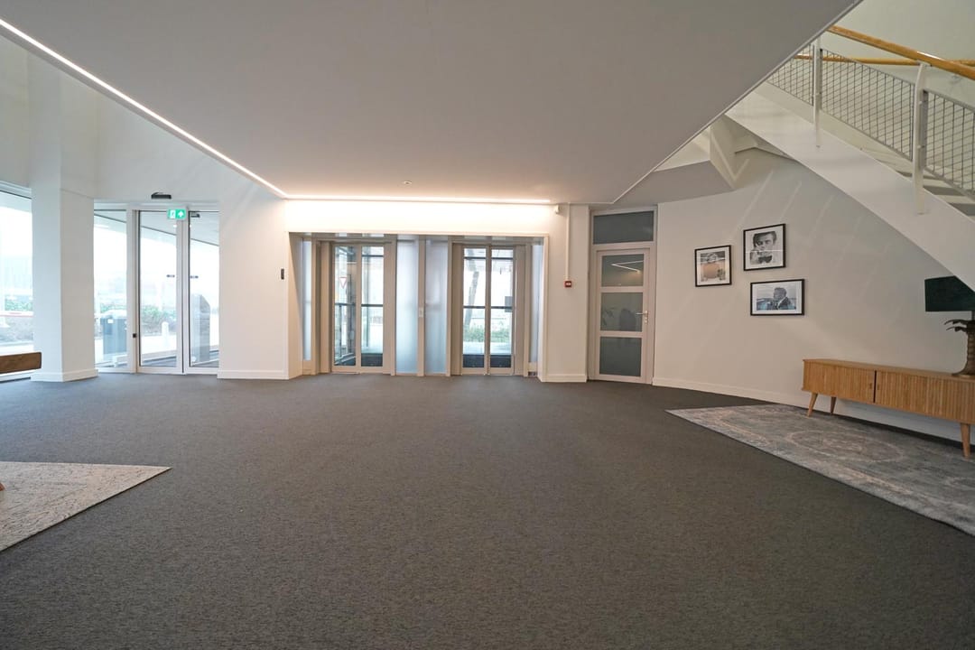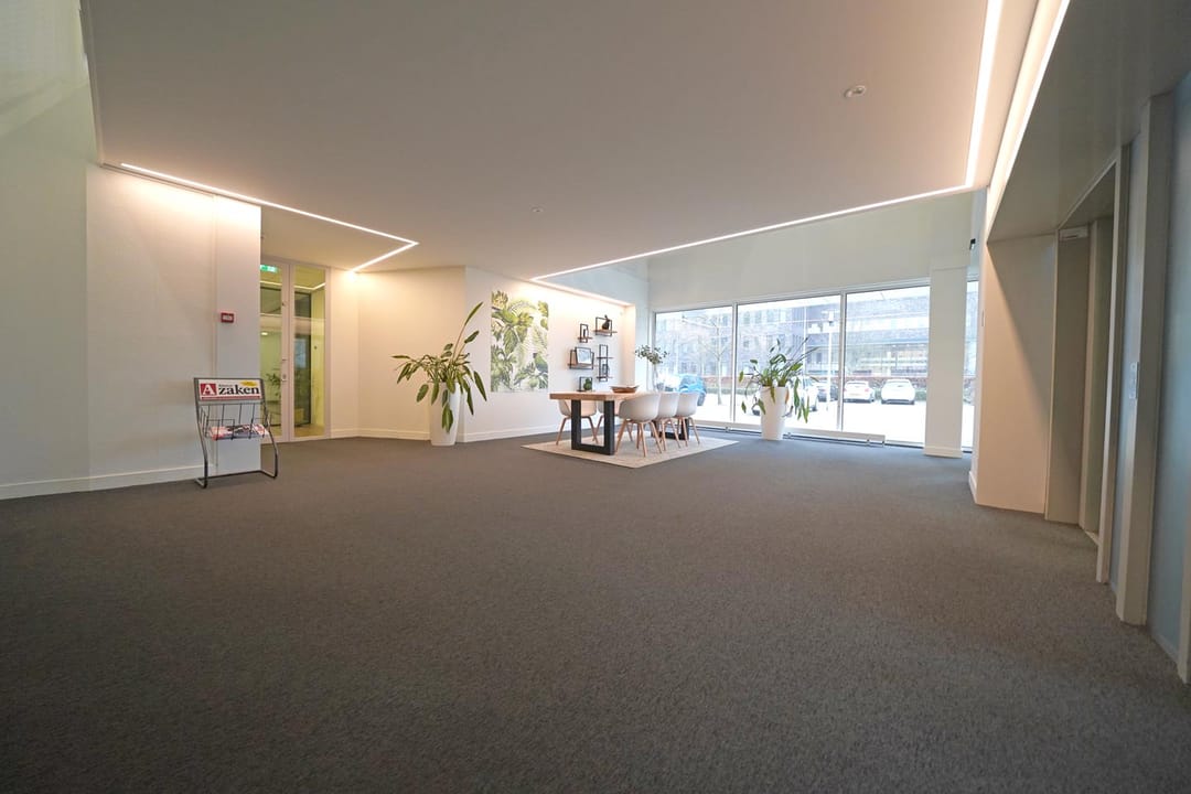 Op loopafstand van NS-station Almere Centrum gelegen representatieve kantoorruimte ter grootte van circa 435 m² op de begane grond. Het multi tenant kantoorgebouw is zeer goed onderhouden. Het kantoorpand beschikt over 5 bouwlagen, welke zich kenmerken door de aanwezigheid van vele raampartijen en lichte wanden. Het is mogelijk op eigen terrein te parkeren en met de auto bereikt u middels de Veluwedreef binnen enkele minuten de snelweg A6. In het gebouw zijn gerenommeerde bedrijven als Flynth gevestigd.