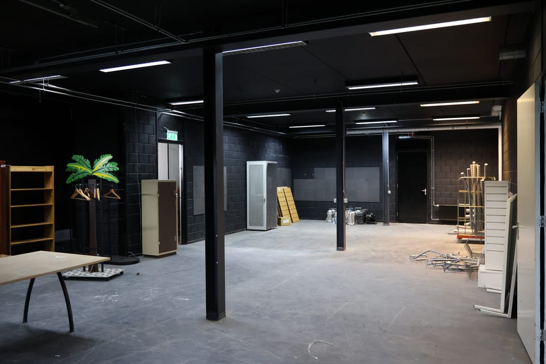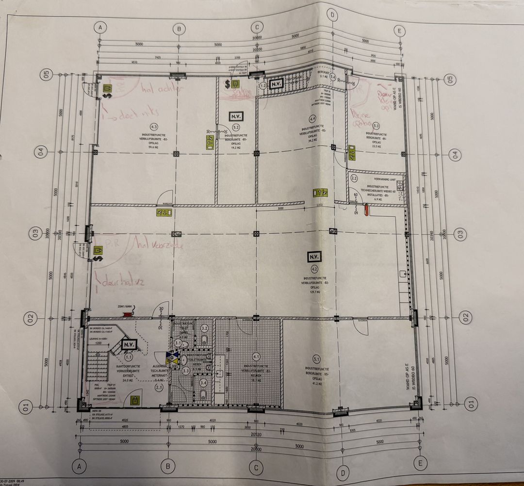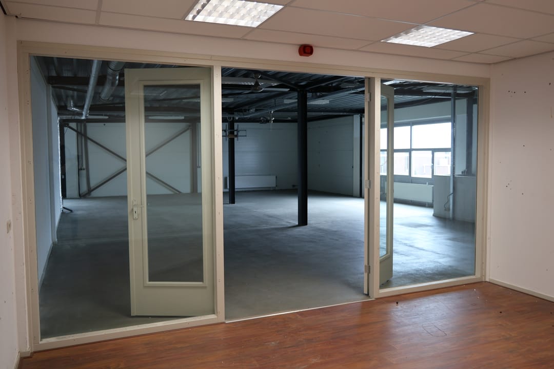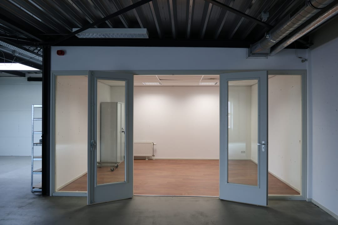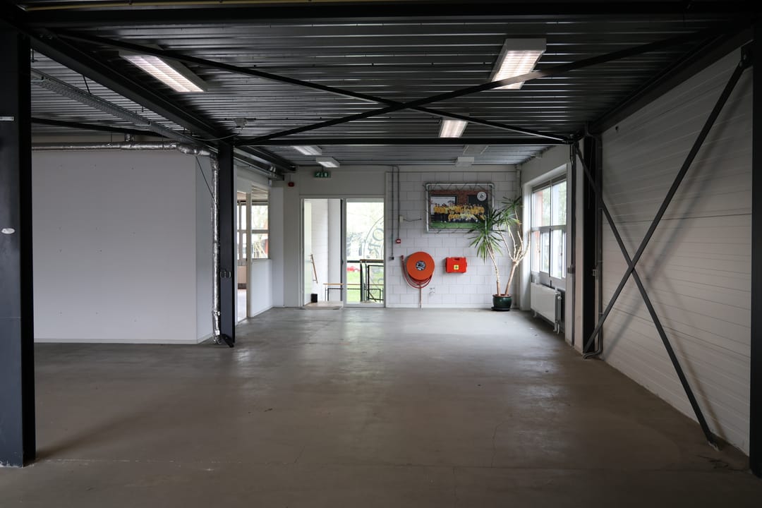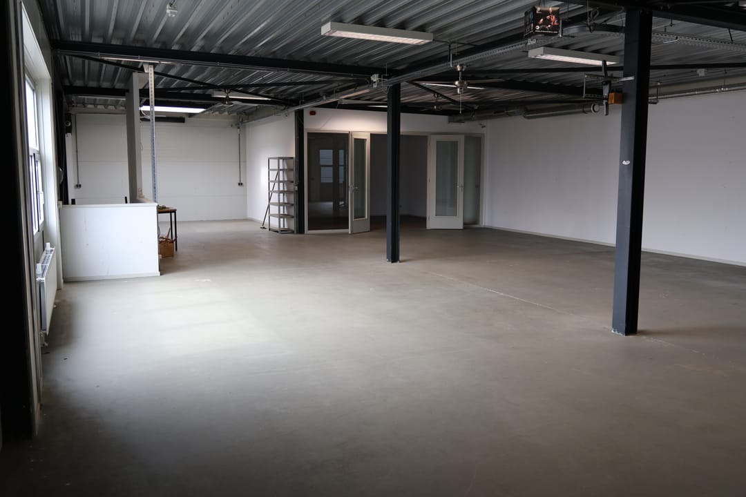 Lichtstraten, overheaddeuren, betonvloer, toilet, pantry, airconditioning, inbouwarmaturen en te openen ramen