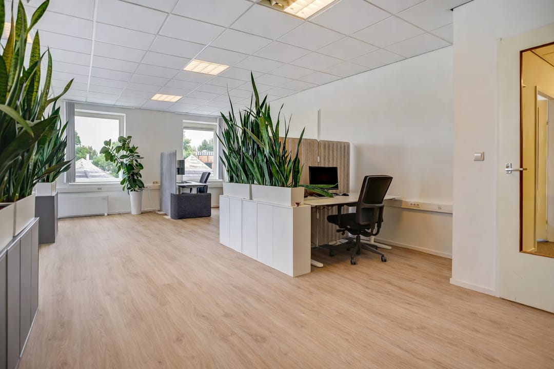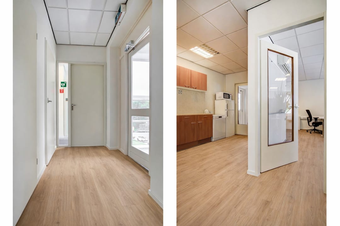 Op de tweede verdieping van een vrijstaand, modern en representatief kleinschalig bedrijfsverzamelgebouw ligt deze hoogwaardige kantoor-/praktijkruimte van circa 120 m². De ruimte beschikt over drie separate kantoorruimten en onderscheidt zich door het rijke daglicht rondom, wat zorgt voor een prettige en professionele werkomgeving.