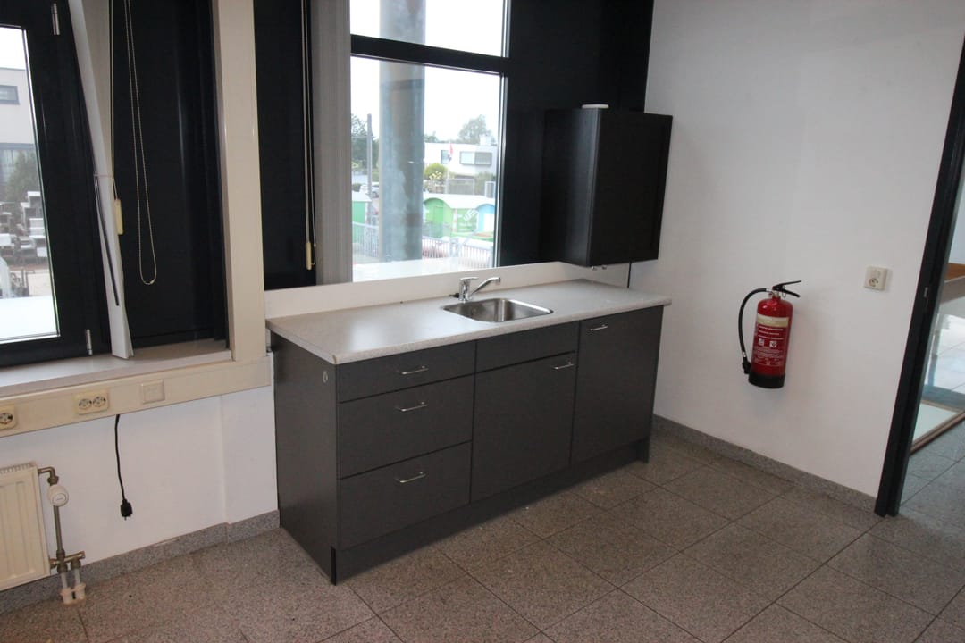 De kantoorruimte bestaat uit een entree op de begane grond van circa 22 m² met een ruime ontvangstruimte, die zich uitstekend leent voor een receptie of wachtruimte. Via de trap bereikt men de eerste verdieping van circa 135 m², waar een royale overloop toegang biedt tot de gescheiden dames- en herentoiletten, een vergader- of directiekamer met vaste kastenwand, en een grote open kantoorruimte met aparte archief-/serverruimte. De aanwezige pantry met spoelbak en koelkast maakt de verdieping compleet en functioneel.