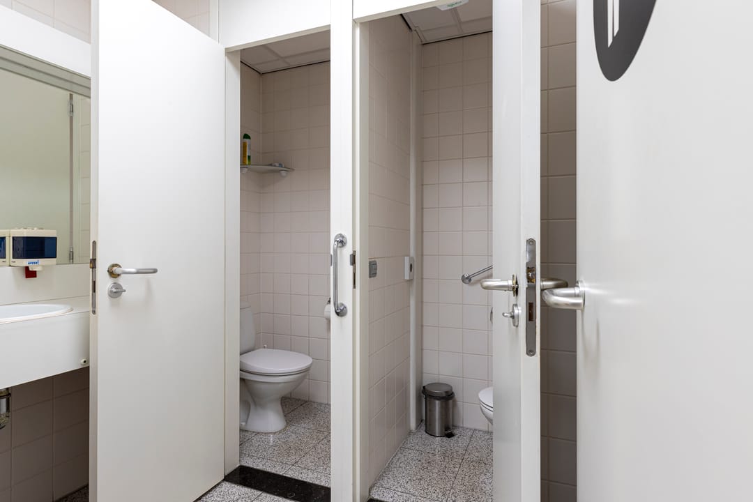 - betegelde toiletgroep D&H per verdieping;