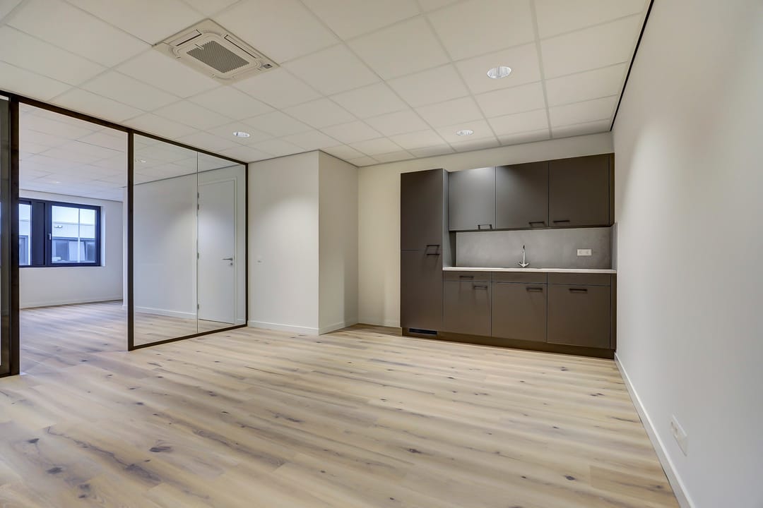- Airconditioning, inbouwarmaturen, te openen ramen, systeemplafond, toilet, pantry, verwarming en kamerindeling