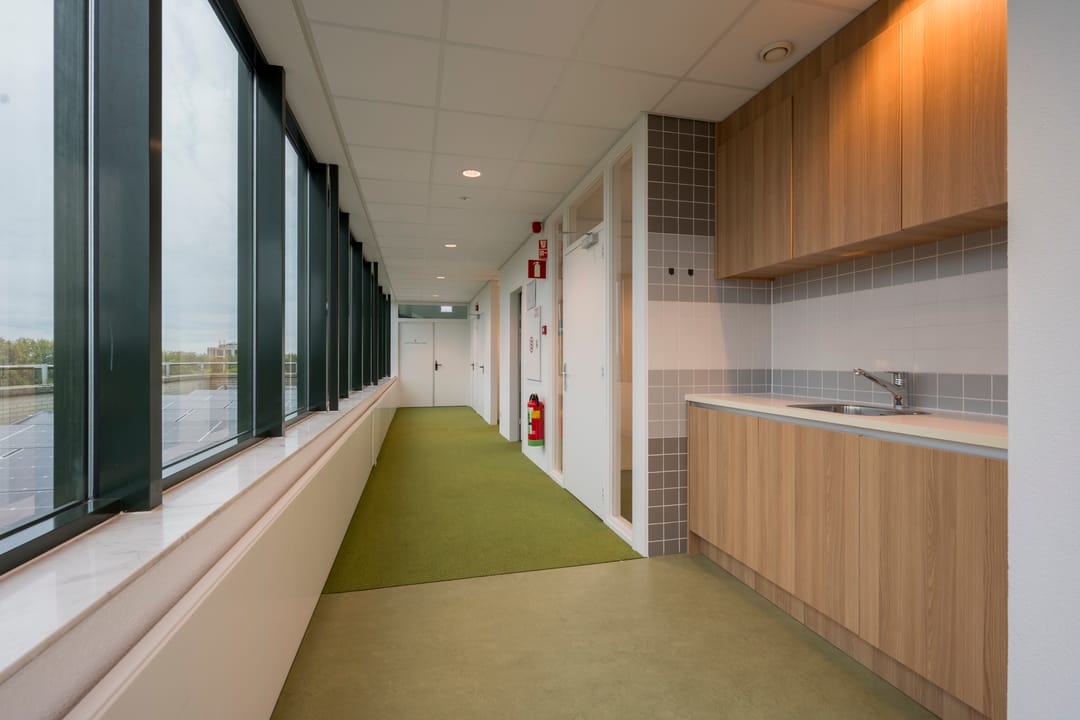 - Topkoeling, inbouwarmaturen, liften, te openen ramen, kabelgoten, systeemplafond, toilet, pantry, verwarming en kamerindeling