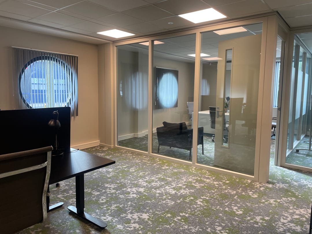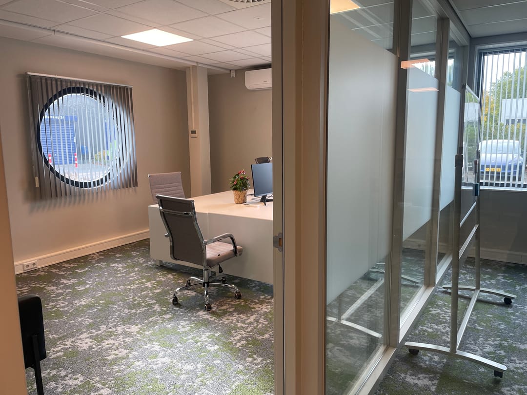 Ruimte V 0.02 – Speulderbos is een lichte en representatieve kantoorruimte van 124 m², gelegen direct bij de hoofdingang van het ABOG Business Centre in Amersfoort. De ruimte bestaat uit meerdere werkzones met glazen scheidingswanden, ideaal voor wie overzicht wil combineren met privacy. Dankzij de indeling is deze unit geschikt voor één organisatie of voor samenwerking tussen meerdere ondernemers.