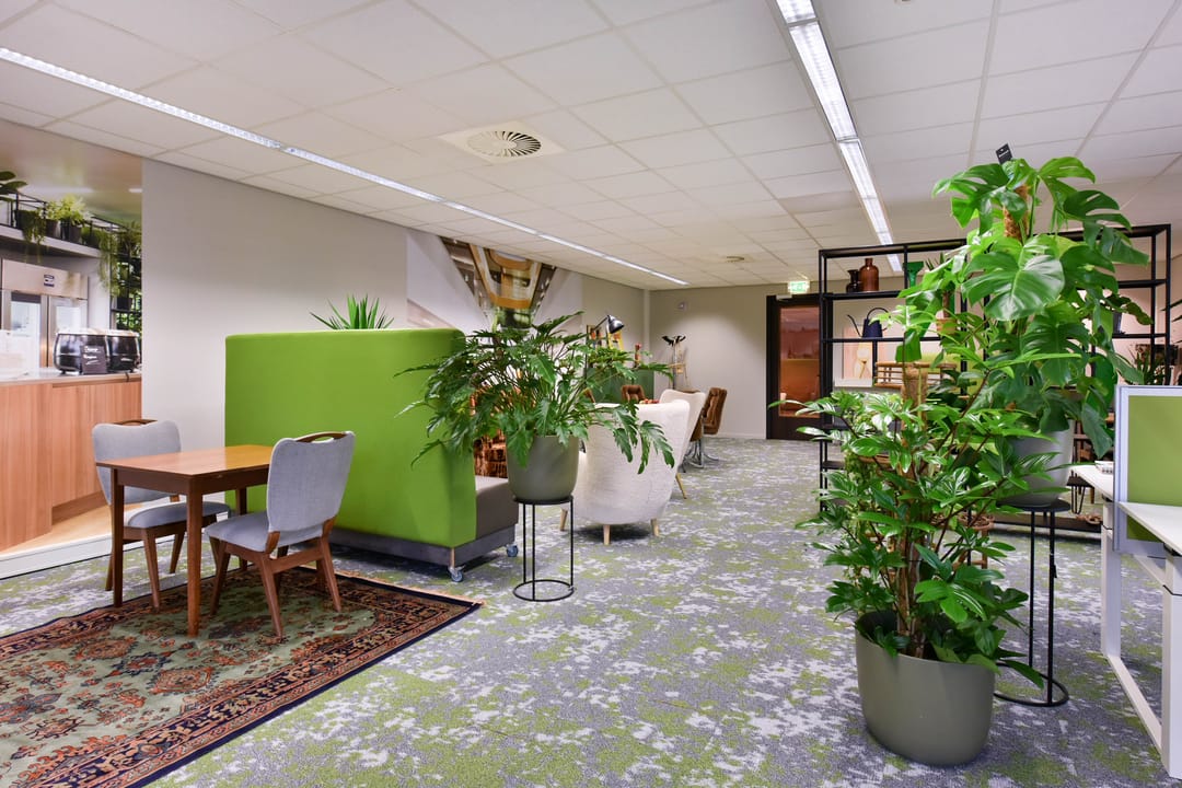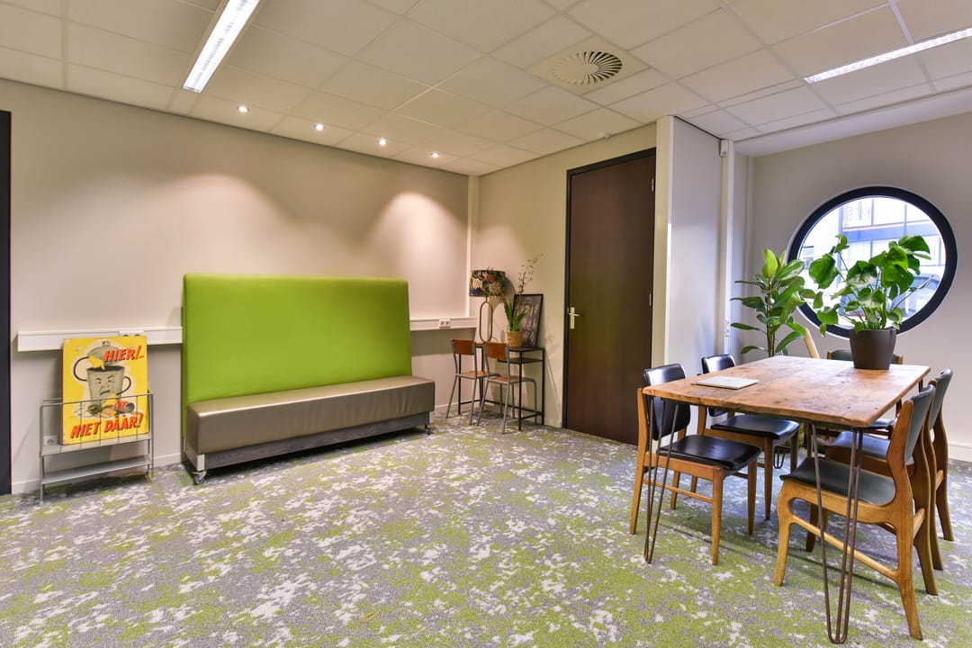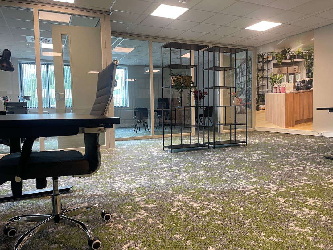 De ligging bij de entree maakt dit kantoor bovendien bijzonder praktisch: de koffiecorner, pantry en toiletten bevinden zich letterlijk om de hoek.