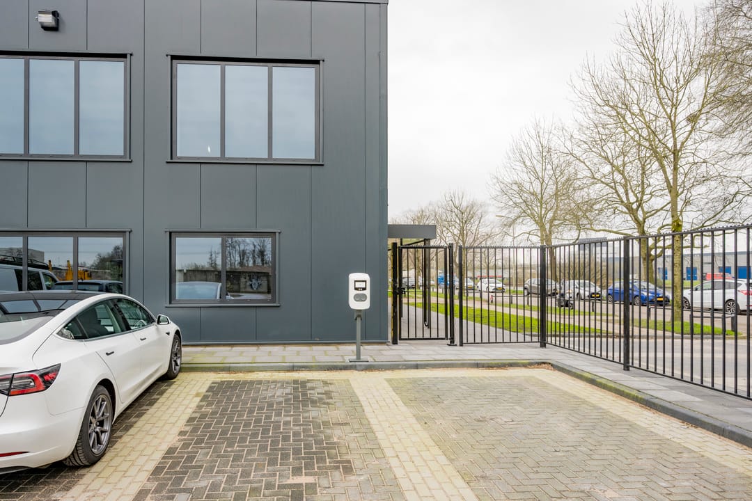 Op eigen terrein zijn vier (4) parkeerplaatsen gelegen. Bij deze parkeerplaatsen is tevens één dubbele laadpaal geplaatst.