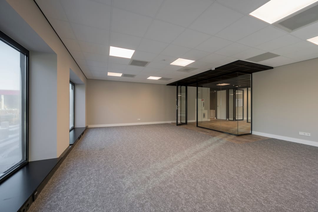 - Airconditioning, inbouwarmaturen, kabelgoten, systeemplafond, toilet, pantry, verwarming en kamerindeling