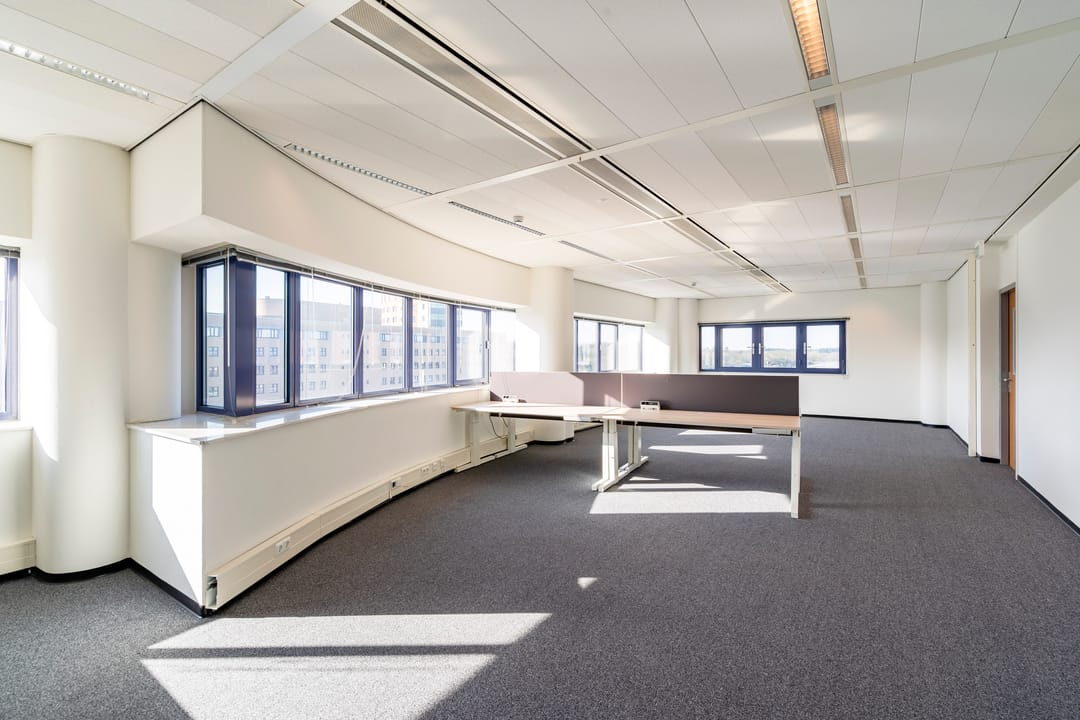 - Lichtinval: Veel natuurlijke lichtinval door ramen aan weerszijden van de kantoorvloeren.