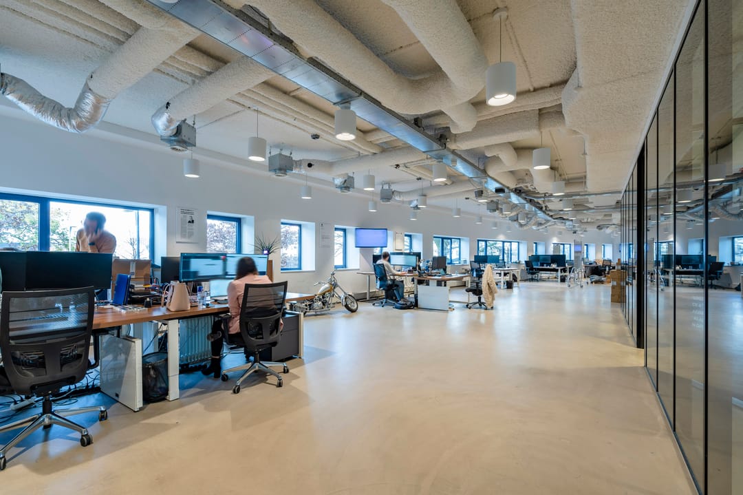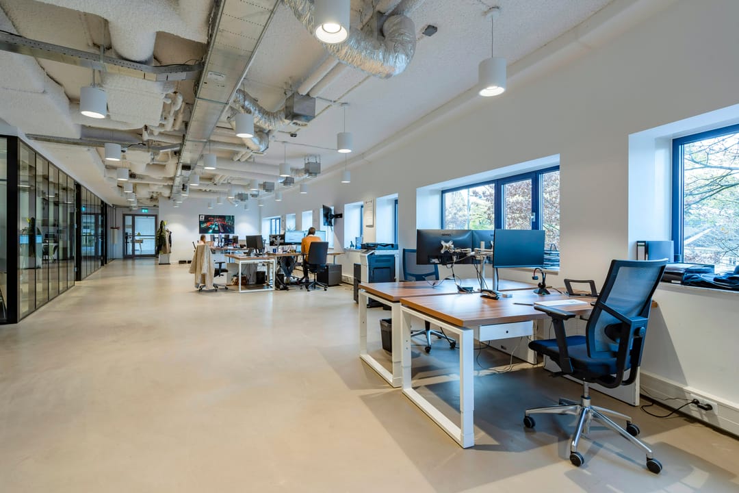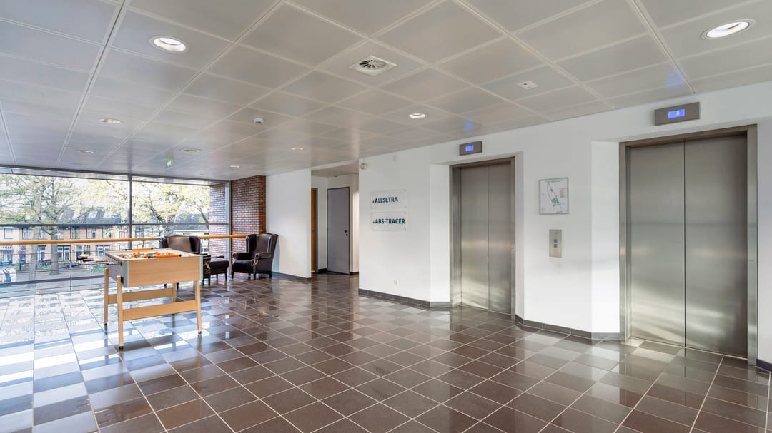 - Lichtinval: Veel natuurlijke lichtinval door ramen aan weerszijden van de kantoorvloeren.