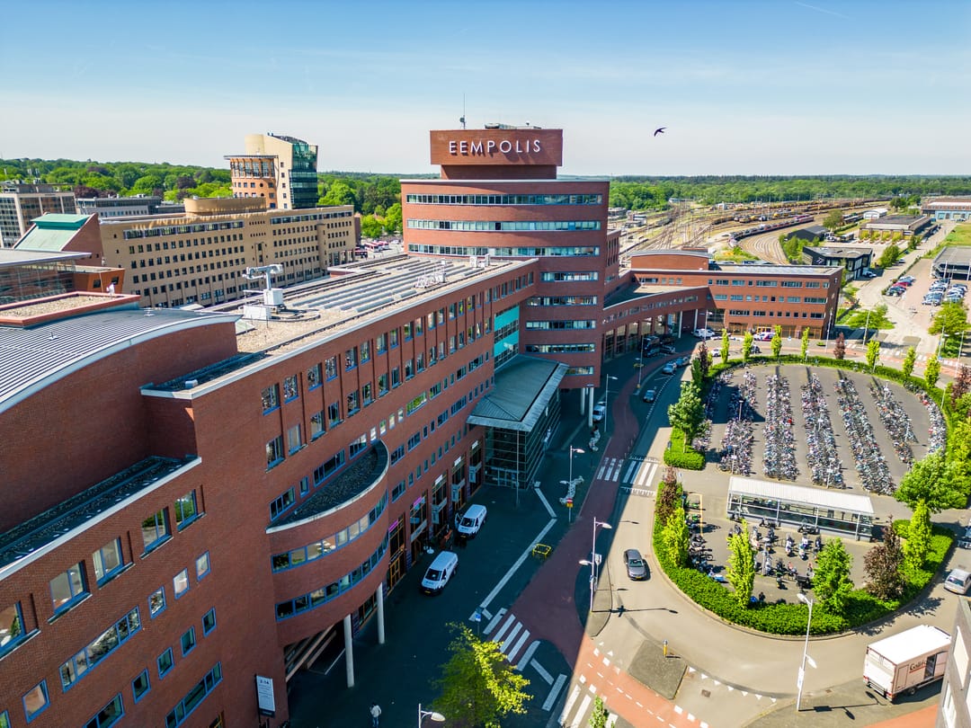 De stationshal van Amersfoort Centraal is direct geïntegreerd in het Eempolis-gebouw, wat zorgt voor een unieke en uiterst centrale ligging. Amersfoort Centraal is het meest centraal gelegen intercitystation van Nederland, waardoor werknemers en bezoekers uit alle windstreken snel en efficiënt kunnen reizen. Dit maakt Eempolis tot een ideale vestigingslocatie voor bedrijven met een landelijke of regionale bereikbaarheid.