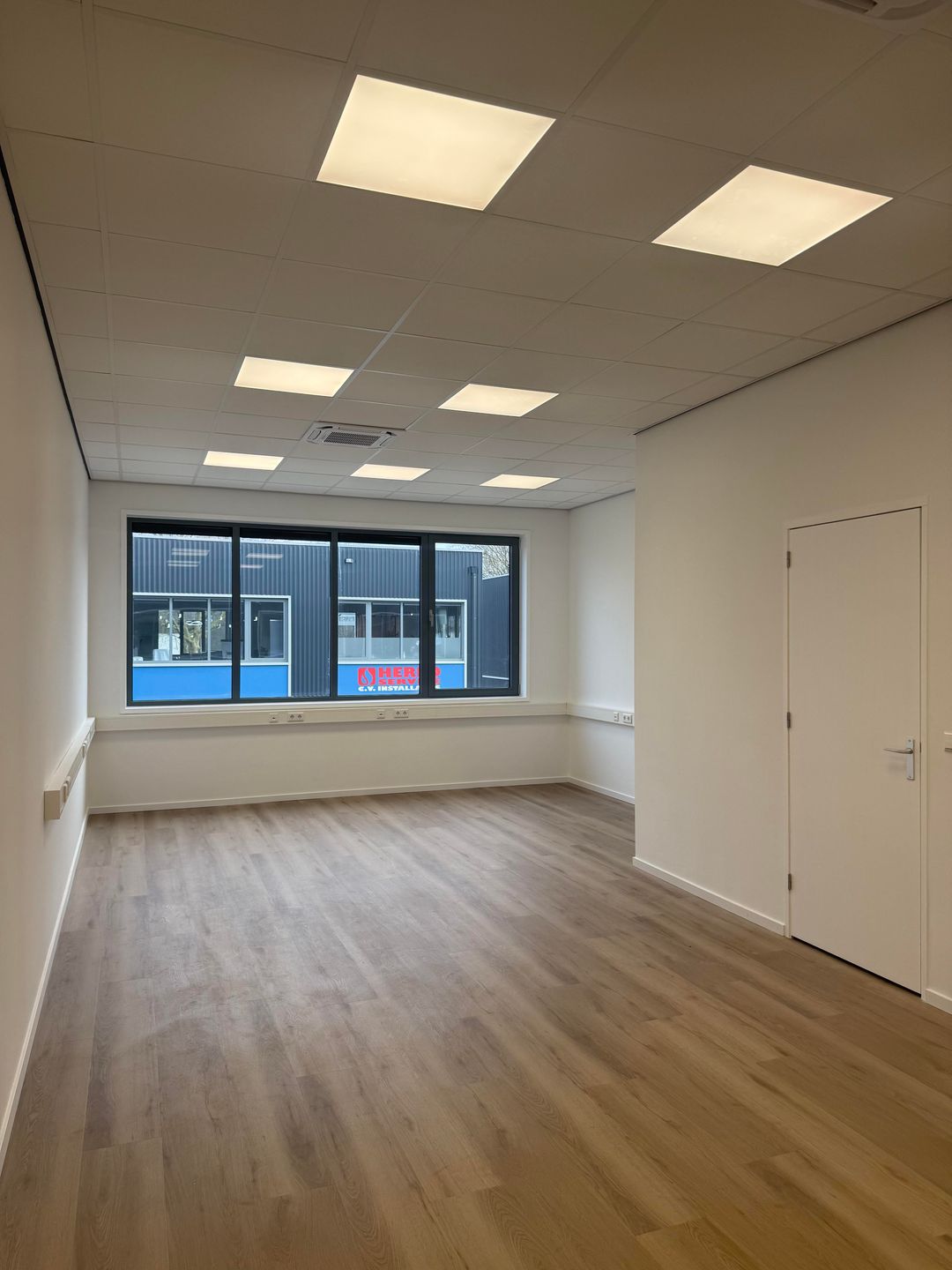 De ruimte kenmerkt zich door een moderne en hoogwaardige afwerking waardoor deze direct in gebruik kan worden genomen. Het kantoor beschikt over een nette entree met vaste trapopgang naar de verdieping en is voorzien van een systeemplafond met geïntegreerde LED-verlichting, strakke wandafwerking en een duurzame pvc vloer die zorgt voor een warme en professionele uitstraling. Dankzij de aanwezige kabelgoten, data- en elektrapunten is de ruimte praktisch ingericht en geschikt voor uiteenlopende kantooractiviteiten. De te openen ramen zorgen voor prettige daglichttoetreding en natuurlijke ventilatie, terwijl de aanwezige airconditioning bijdraagt aan een comfortabel binnenklimaat gedurende het hele jaar.