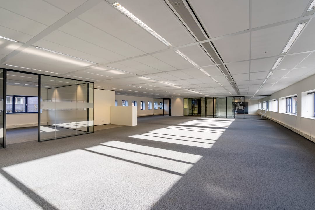 - Lichtinval: Veel natuurlijke lichtinval door ramen aan weerszijden van de kantoorvloeren.