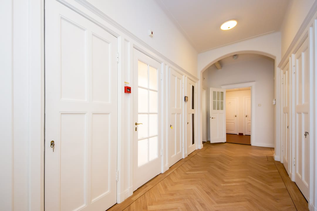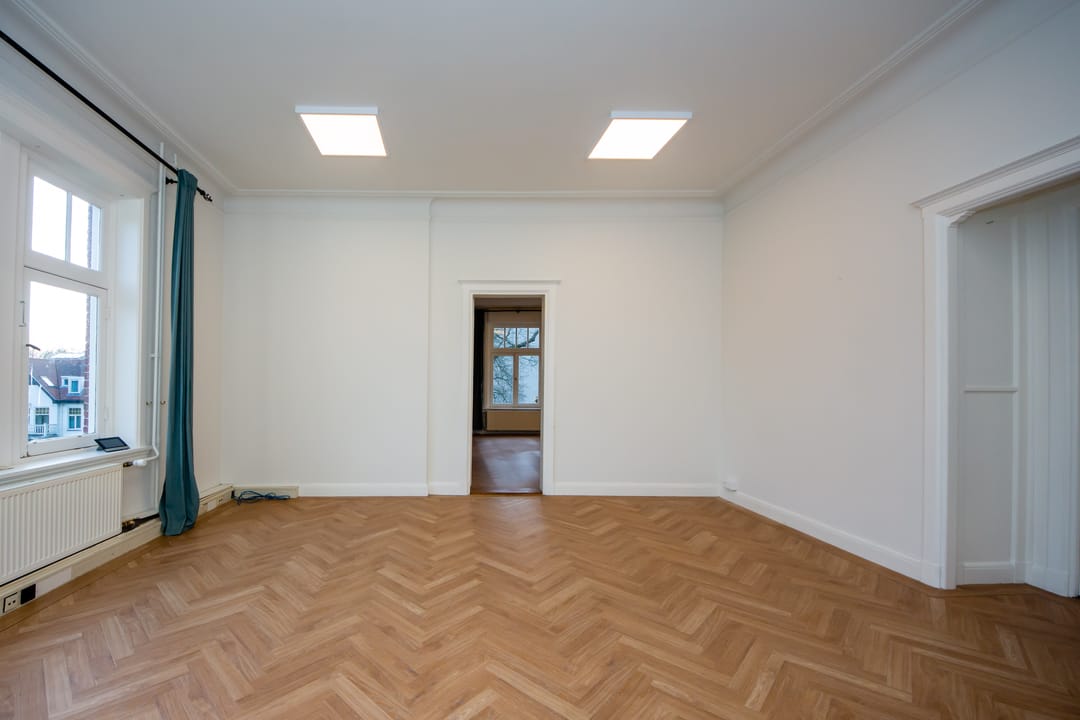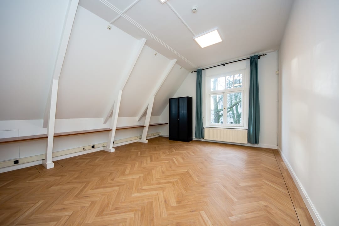 De volledig zelfstandige kantoorverdieping beschikt over vier ruime kantoorkamers die uitkijken op het groen, eigen toiletten en een (nieuwe) keuken.