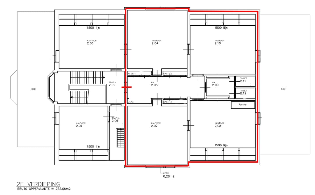 Circa 150 m² op de 2de verdieping.