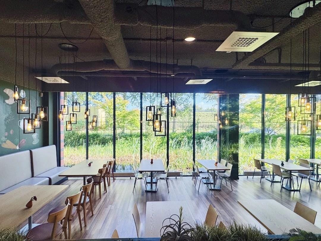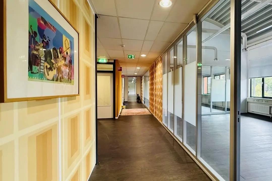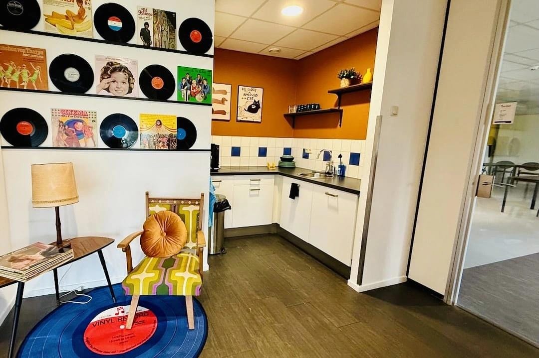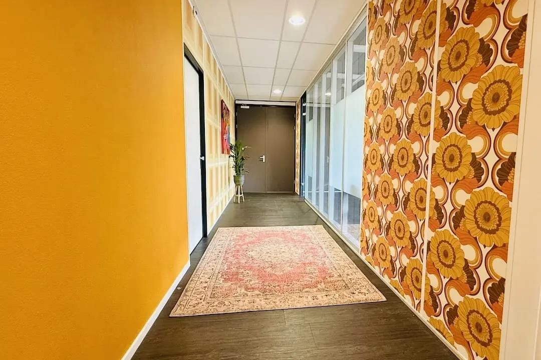 Ons pand is voorzien van een stoere industriële look gecombineerd met warme jaren ’70 details. Je merkt het in de hoge plafonds, zichtbare buizen, retrobehang, warme kleuren, en zorgvuldig gekozen elementen. De algemene ruimtes en pantry zijn van alle gemakken voorzien en worden onderhouden zodat het schoon en representatief blijft.