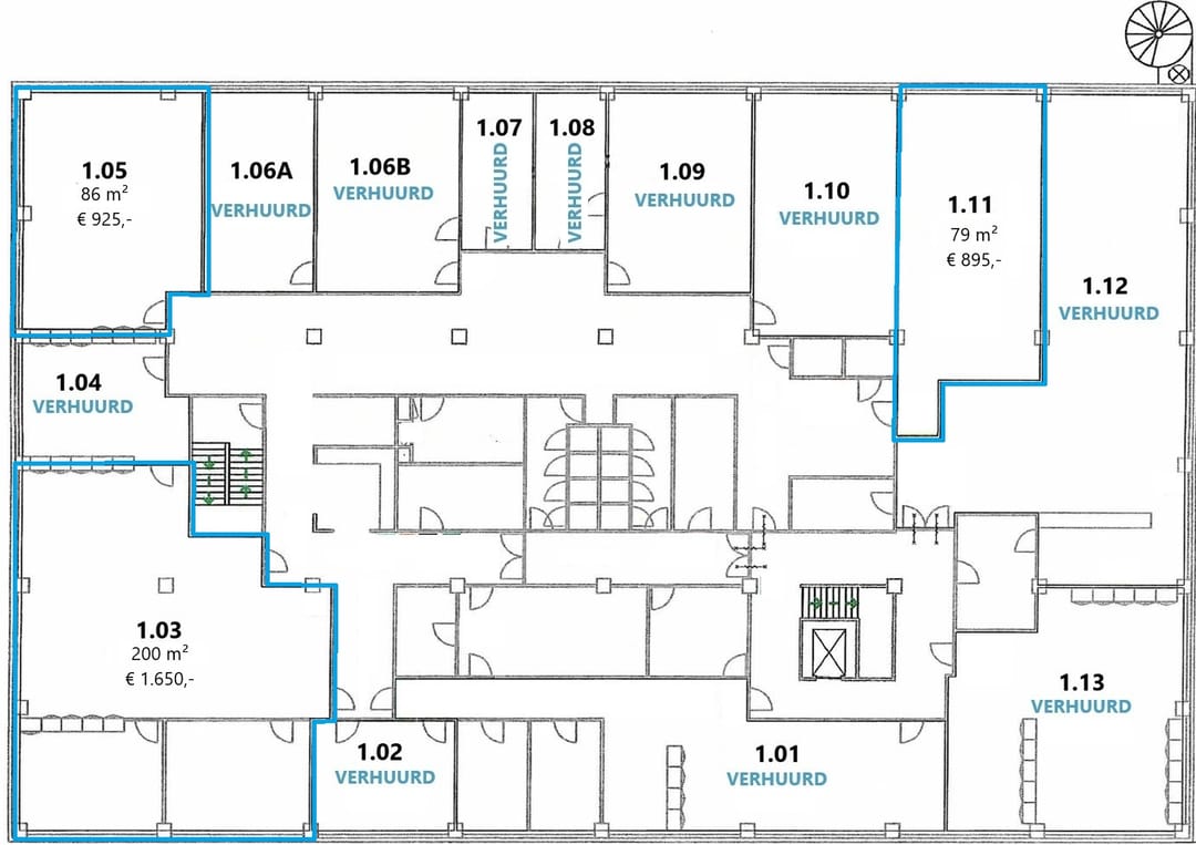 Het object wordt in casco staat verhuurd en is voorzien van het bestaande inbouwpakket met o.a.: