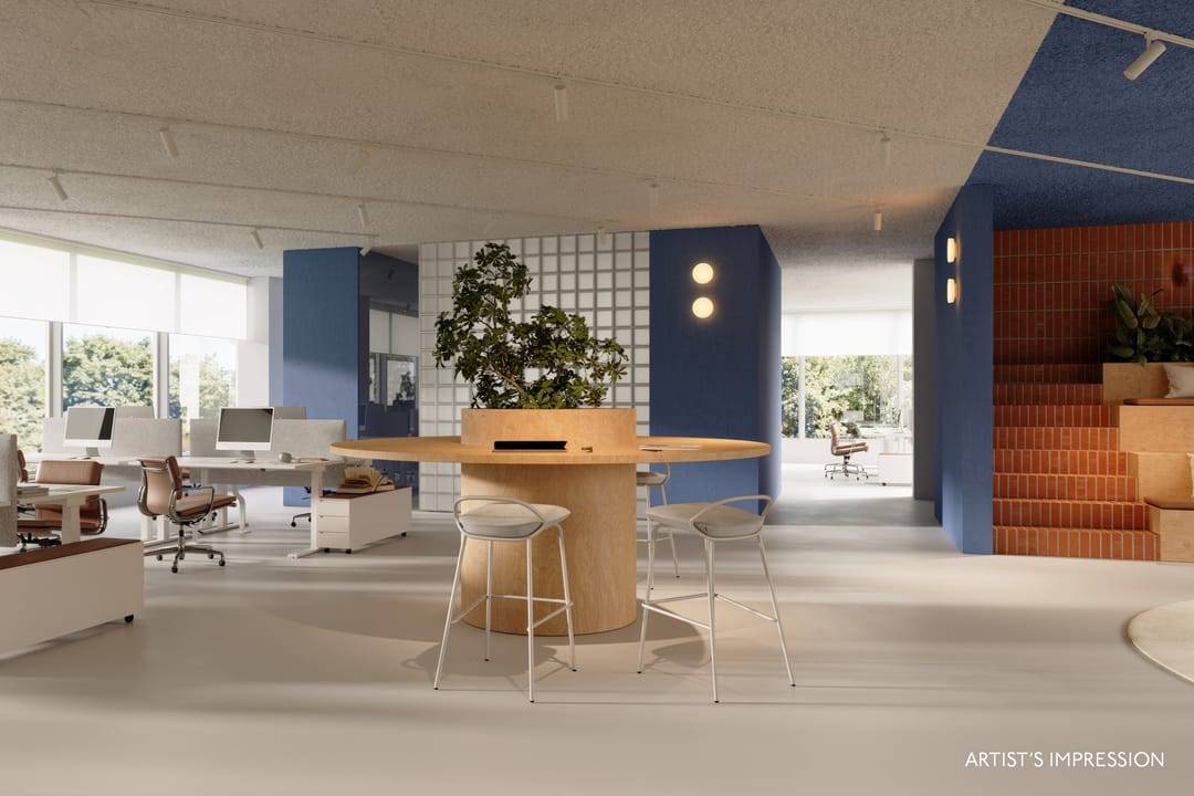 Ter impressie zijn renders gemaakt naar ontwerp van Firm Architects. Firm Architects lost ruimtelijke uitdagingen op voor inspirerende organisaties die hun eigen verhaal willen vertellen. Of het nu gaat om het ontwerpen van een compleet kantoor vanaf casco of een rebranding, Firm Architects gelooft dat ruimte bepaalt wie je bent, hoe je leeft en werkt. Door de juiste vragen te stellen, vertaalt Firm Architects het DNA van de organisatie tot een inspirerend kantoor; zo ook voor A’dammium. In overleg met verhuurder en naar wens van een nieuwe huurder kan dit turn-key opleveringsniveau worden gerealiseerd.
