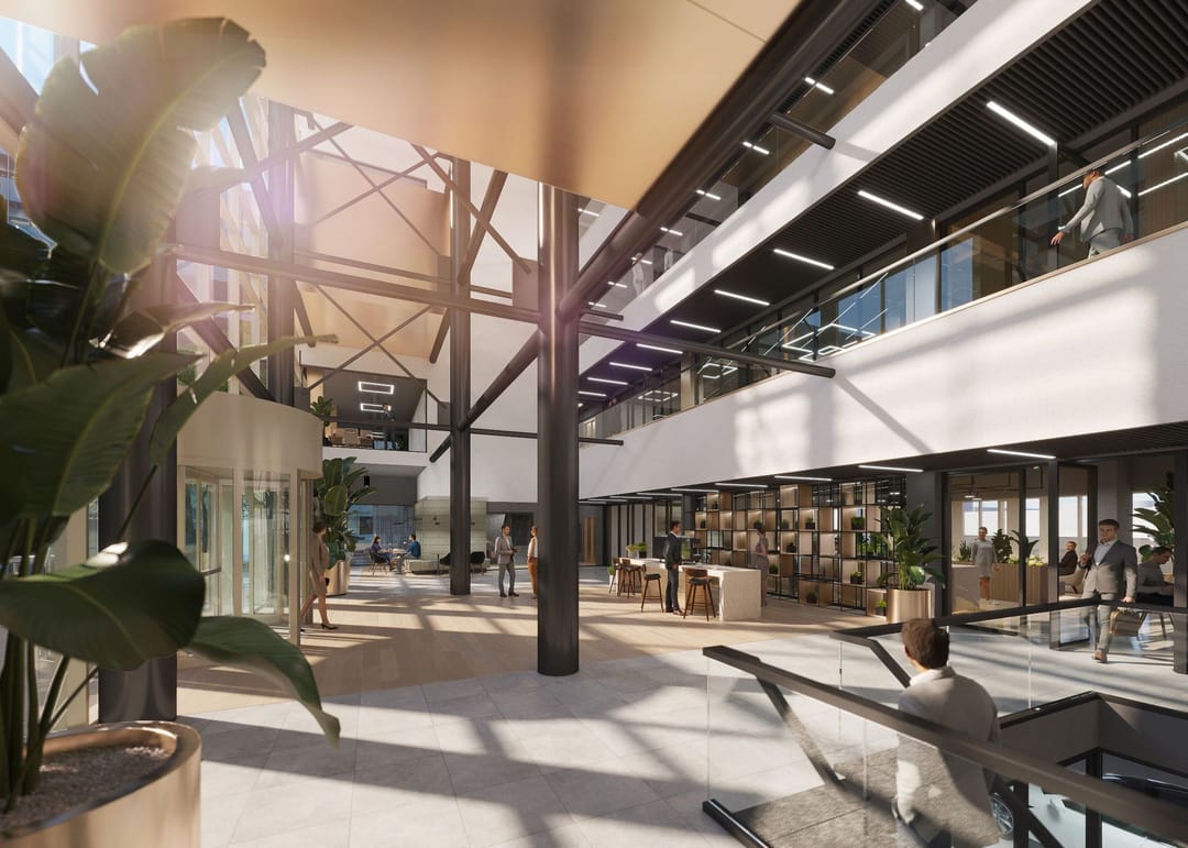 Achter de imposante gevel gaat een prachtige ontvangstruimte schuil. Bij binnenkomst via de directe verbinding vanuit de parkeergarage of via de hoofdentree worden bezoekers hartelijk verwelkomt door de receptioniste die tevens barista is, ook wel receptionista genaamd.