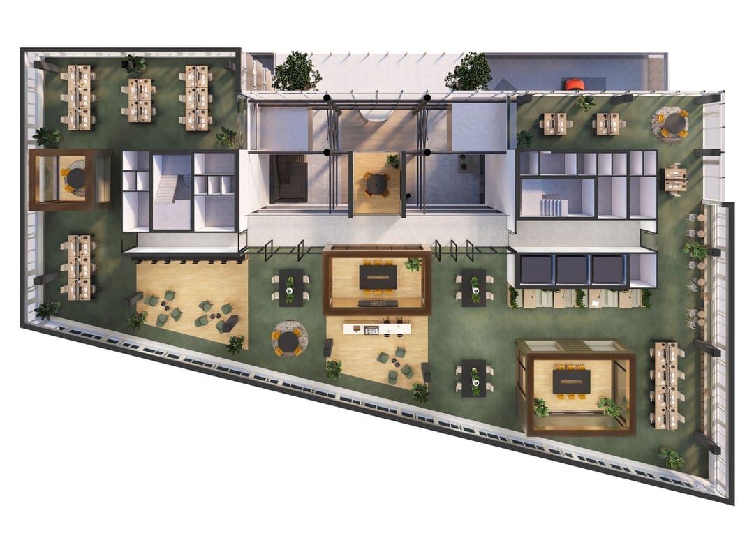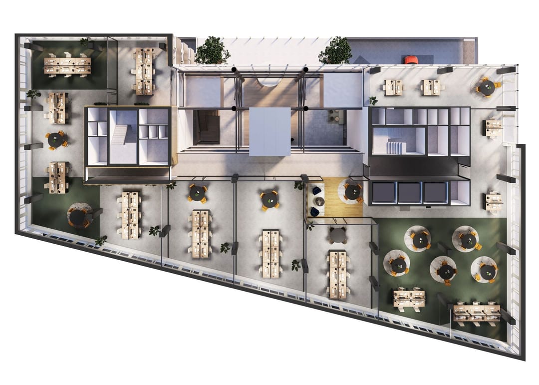 Bij Gaudi Offices snappen we dat een business floreert bij een gezonde werkomgeving. Een omgeving waar je kunt ontspannen en die de mogelijkheid biedt gezond te leven. Allerlei elementen in ons interieur en in ons aanbod dragen daaraan bij. Opvallend is bijvoorbeeld de open structuur van het gebouw waardoor daglicht onbelemmerd naar binnen kan vallen. En state-of-the-art installaties zorgen de hele dag voor verse luchtaanvoer. In een inpandige gym kunnen huurders stoom afblazen om vervolgens in het restaurant of in een relaxte lounge weer op adem te komen met gezonde snacks. En dat allemaal op een oppervlakte van bijna 9.000 vierkante meter. Gaudi Offices is hét antwoord op healthy working.