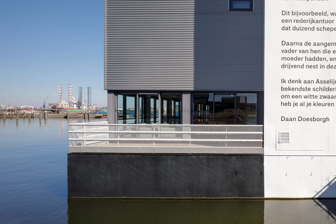 Daarnaast beschikt het pand over een multifunctionele evenementenruimte, “Dek West”, geschikt voor exposities, bijeenkomsten en presentaties, met uitzicht over het water en een aanlegsteiger voor boten.