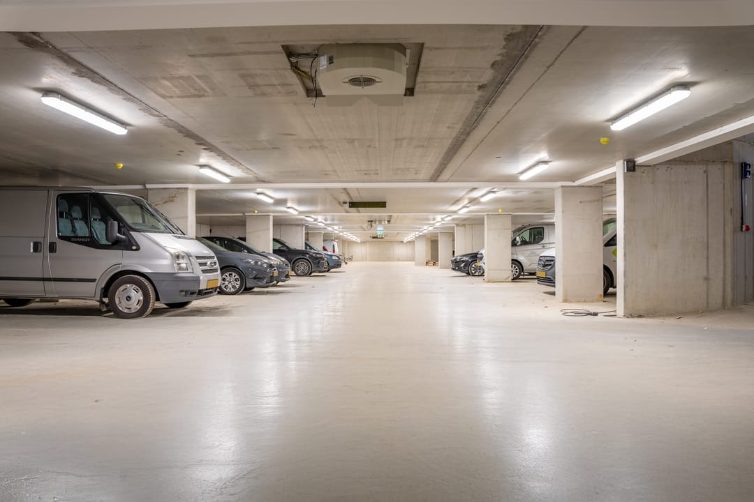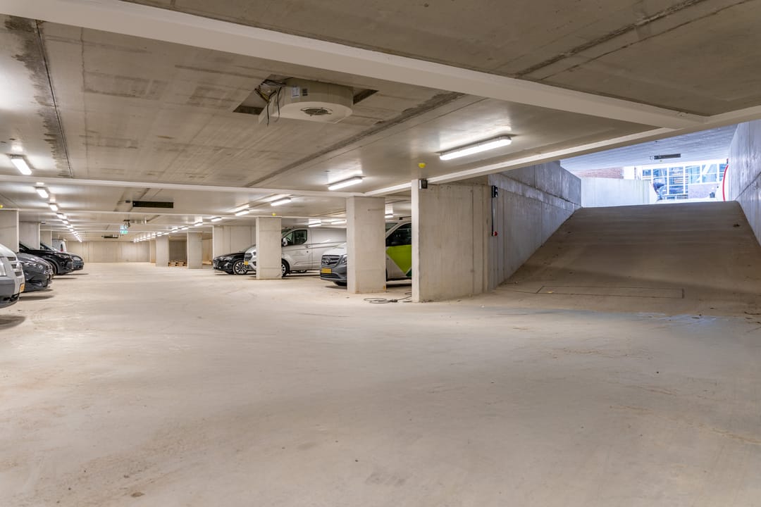 In de inpandige parkeerkelder zijn 55 parkeerplaatsen beschikbaar. De kosten per parkeerplaats bedragen €225,00 per maand.